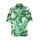 Green cotton piqué weave oversize frame banana tree print polo collar stripe trim short sleeves straight hem