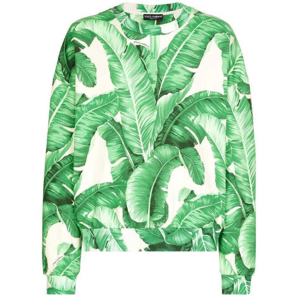 White/green cotton all-over graphic print crew neck drop shoulder long sleeves