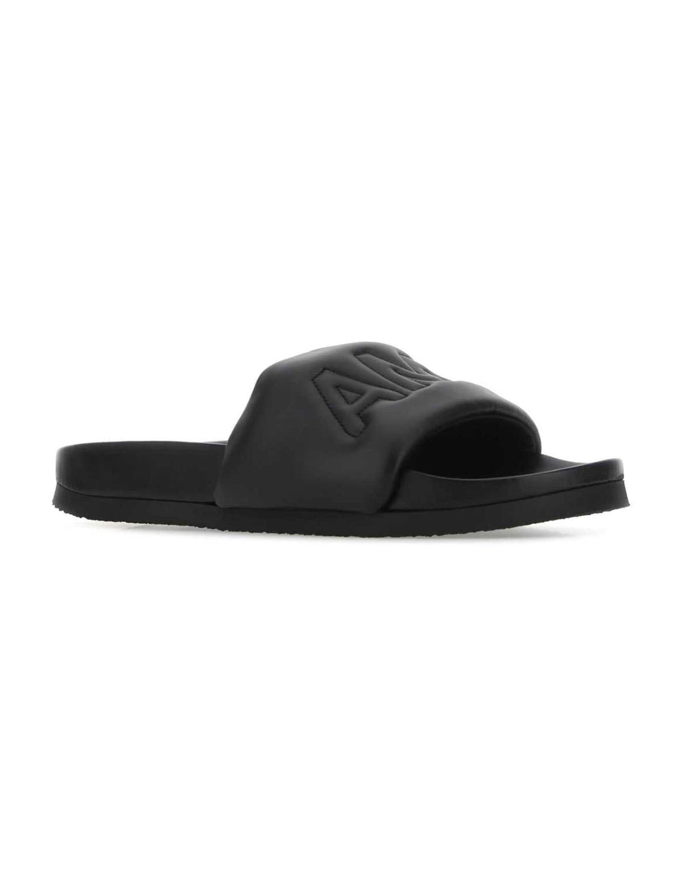 logo-embossed leather slippers