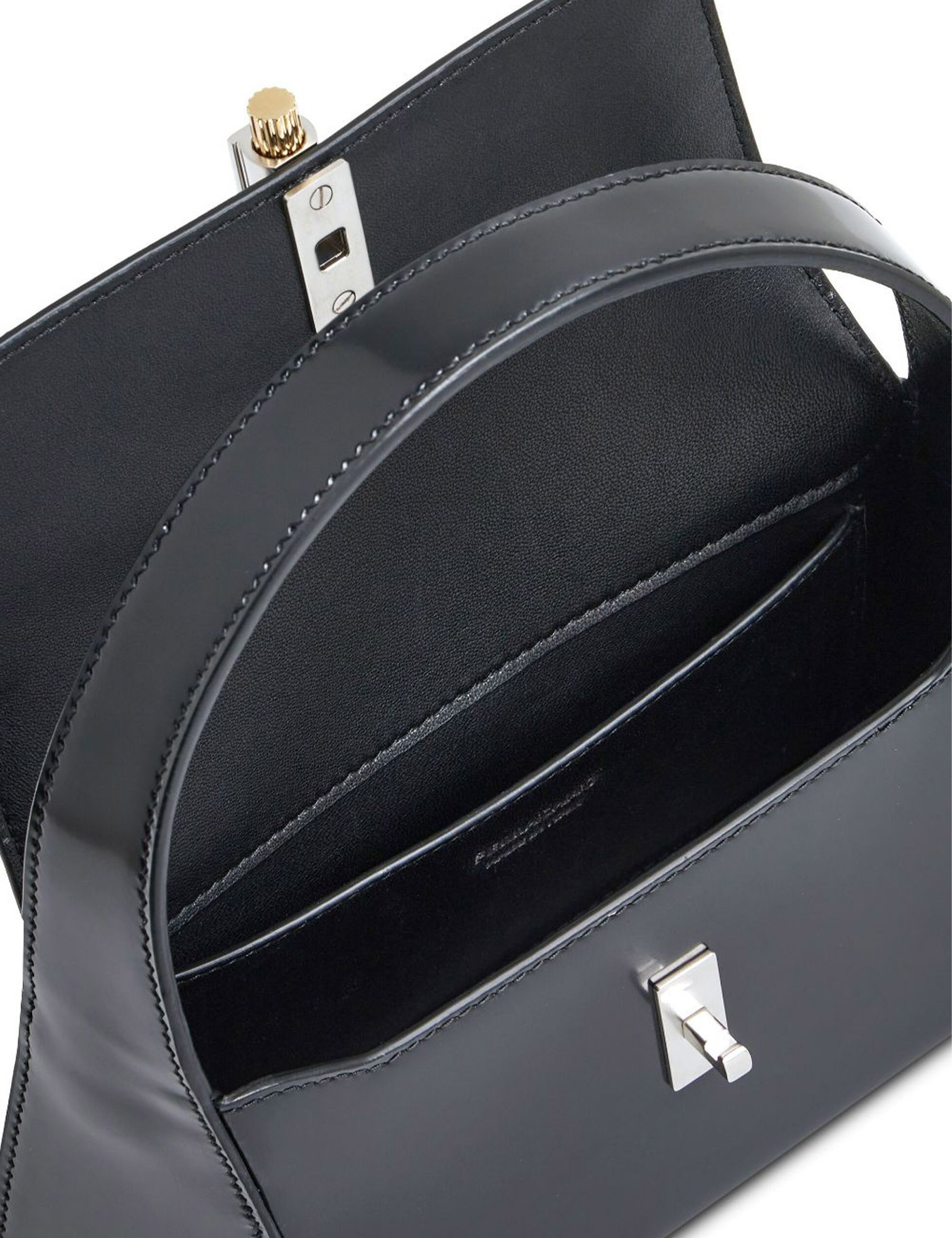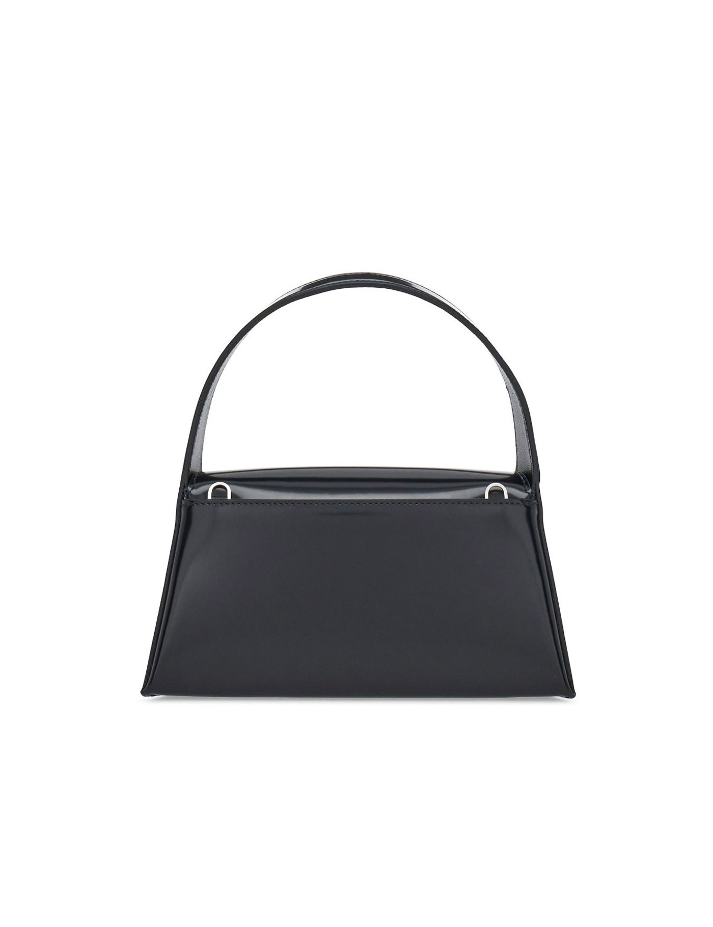 Black leather mini Prisma handbag Width: 22,5 cm Height: 12 cm Depth: 6,5 cm Handle height: 9 cm Min shoulder strap length: 54 cm Max shoulder strap length: 60 cm