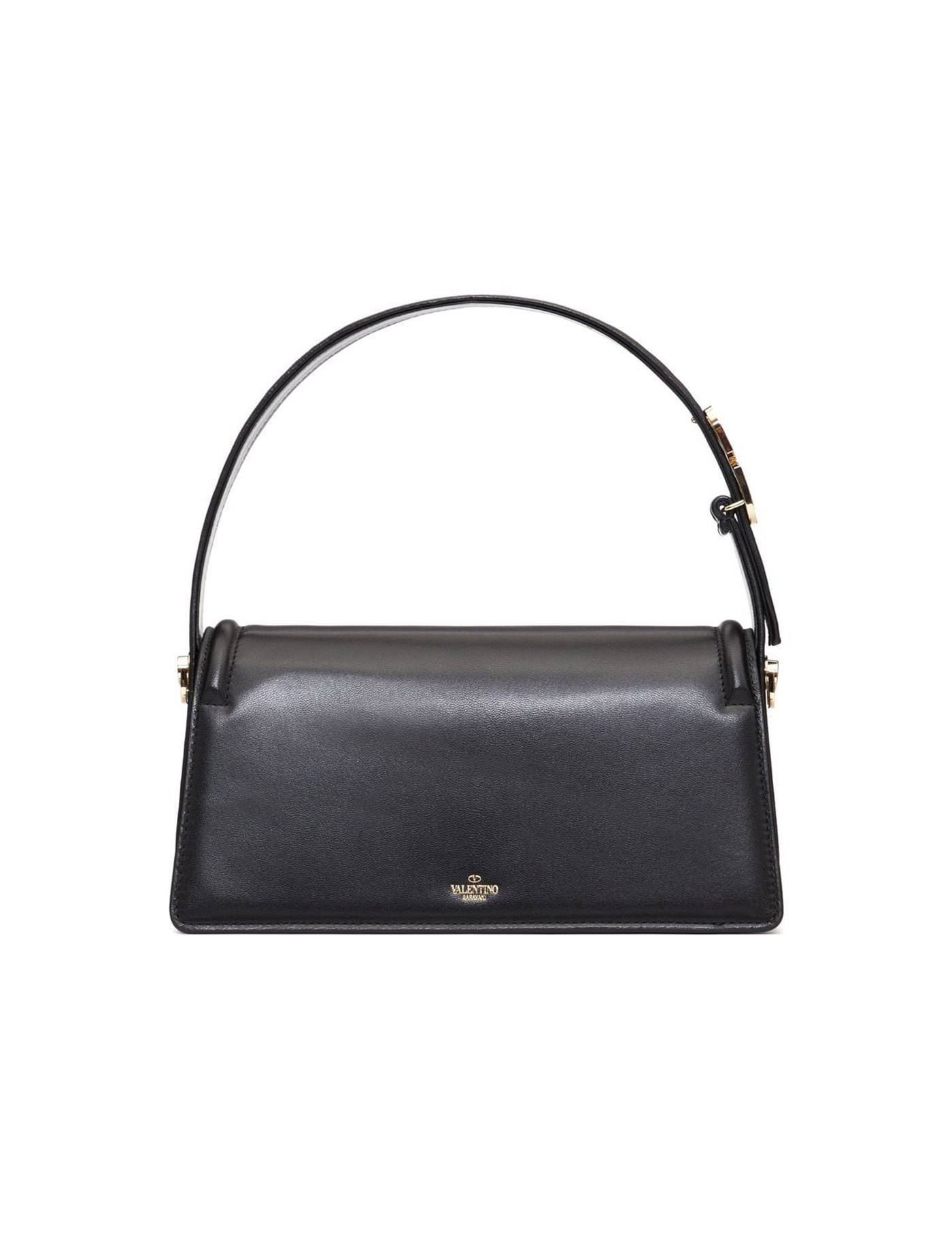 Le Deuxième shoulder bag from VALENTINO GARAVANI featuring black, goatskin, VLogo Signature, gold-tone hardware, foldover top, single top handle, adjustable detachable shoulder strap and main compartment.