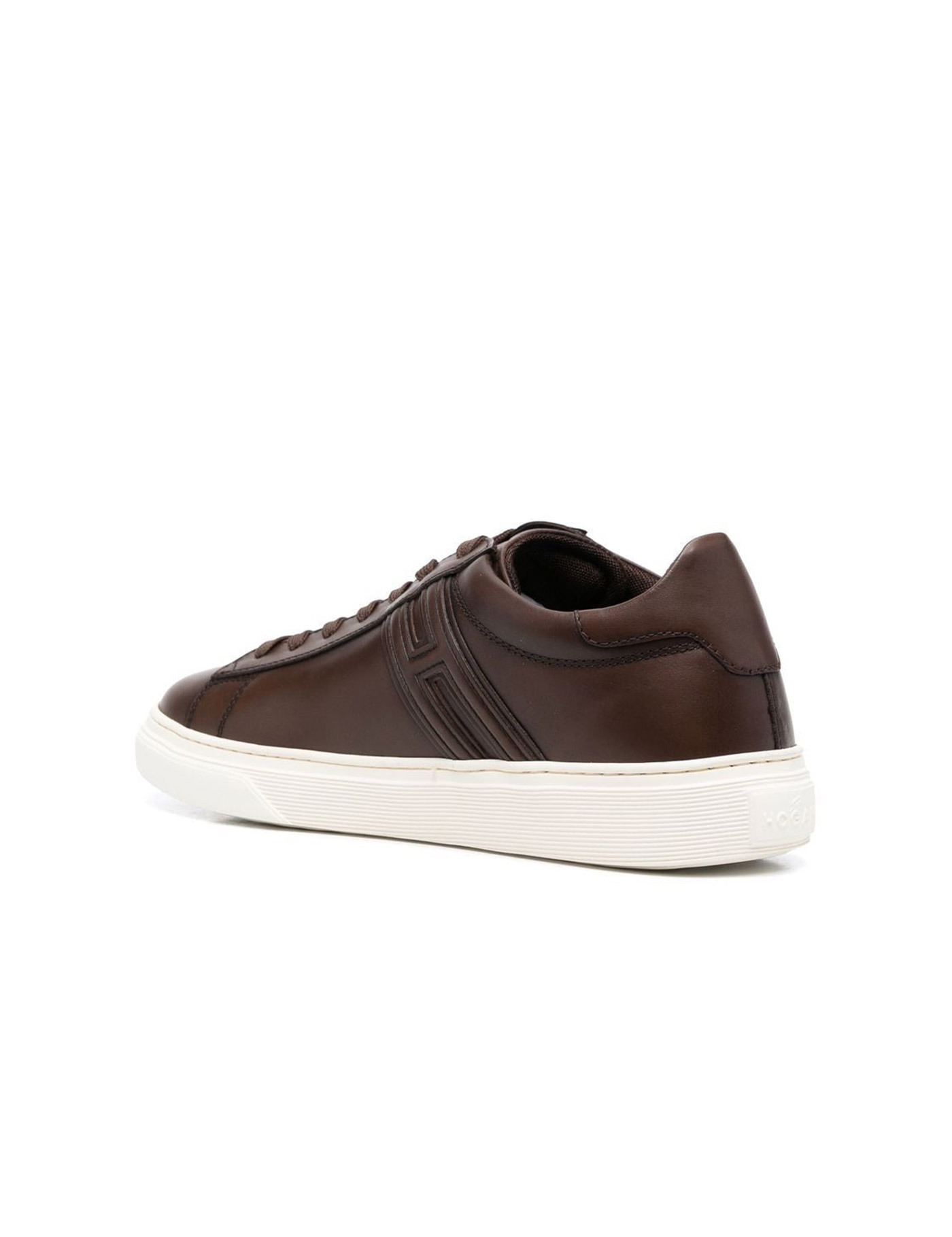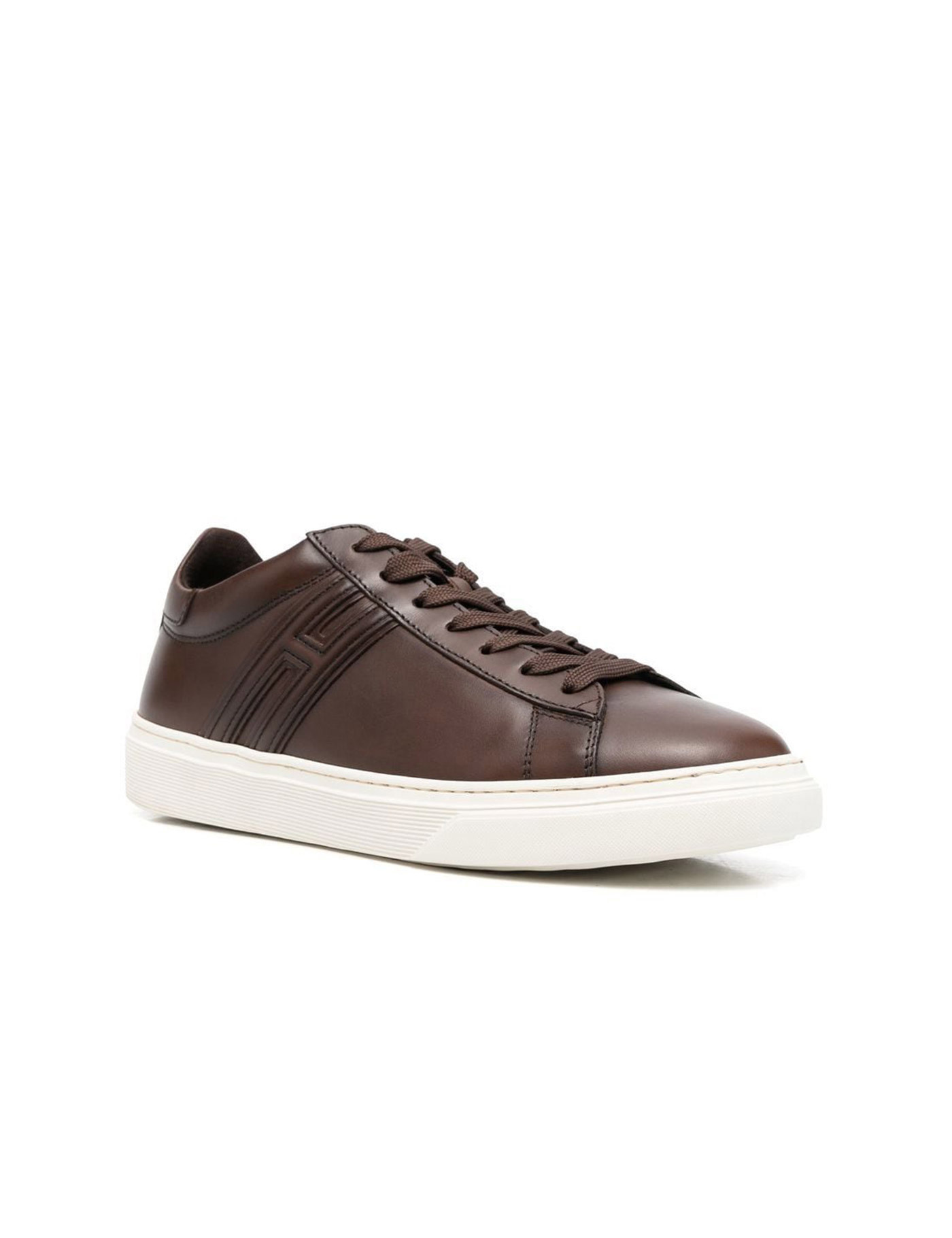 Hogan sneakers in Brown leather. Round tip. Lace-up. Tone-on-tone logo on the tongue. Side tone-on-tone "H" logo. Rubber sole with "Hogan" lettering on the back.