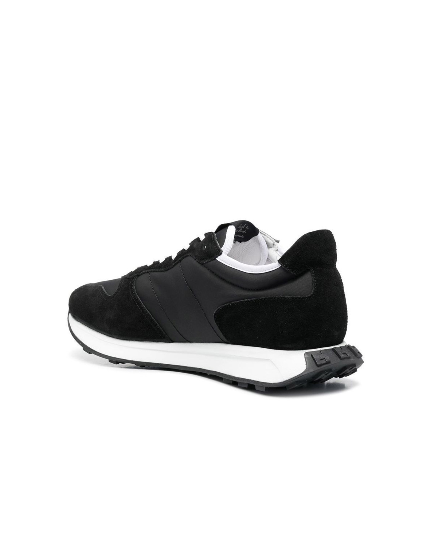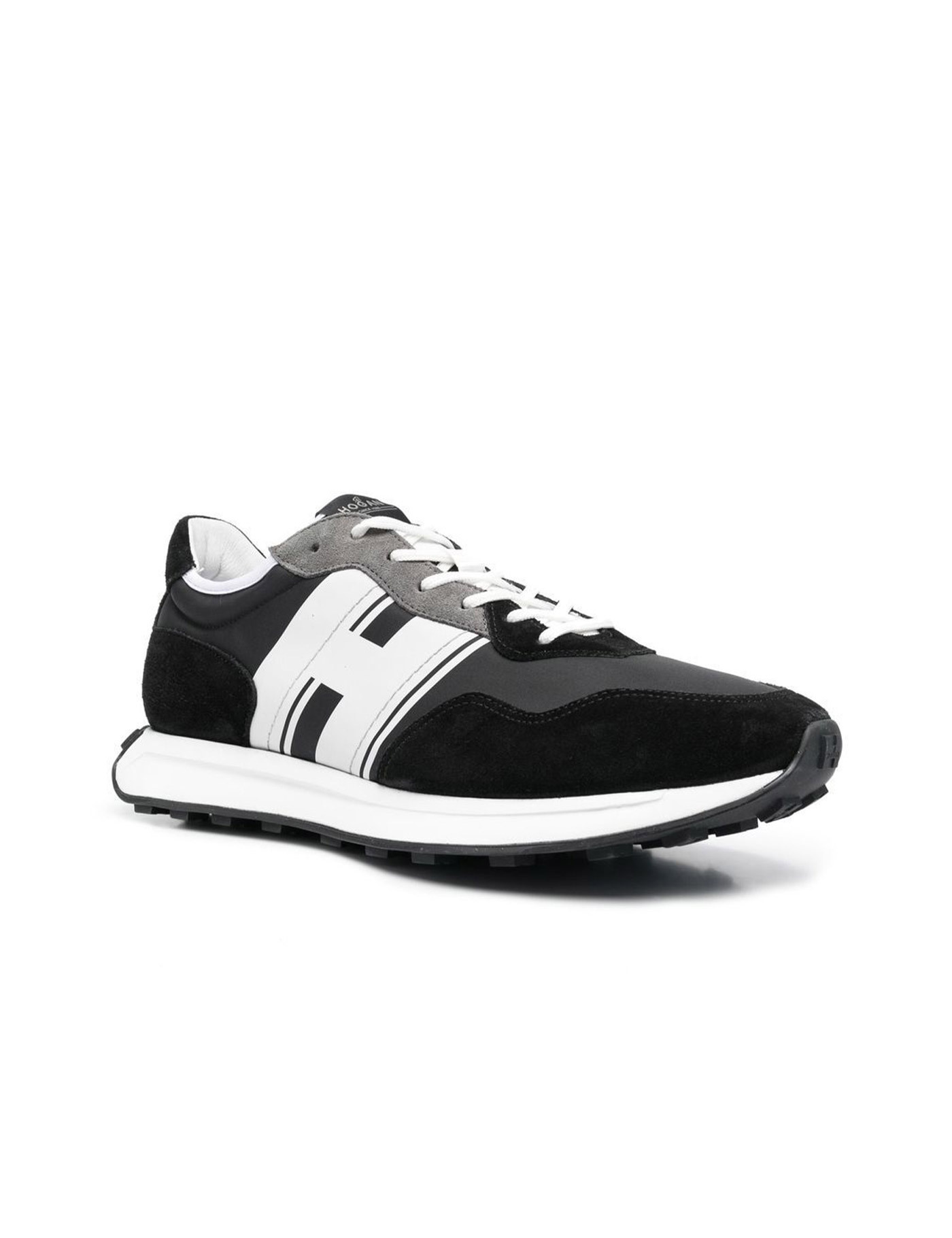Hogan sneakers in black suede and nylon. Inserts in gray suede. Contrasting strings. White "H" printed on the side. Memory foam insole. 30 mm white rubber sole. Made in Italy