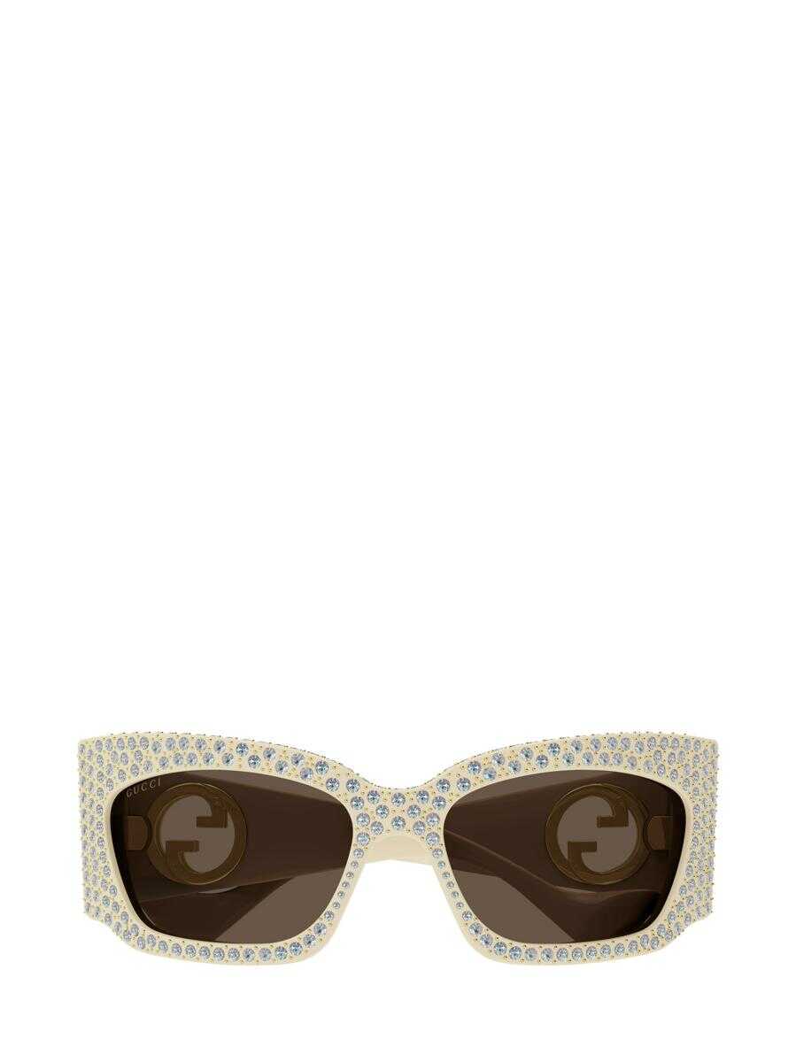 Sunglasses Gucci Eyewear Ivory Brown Geometric Acetate Women