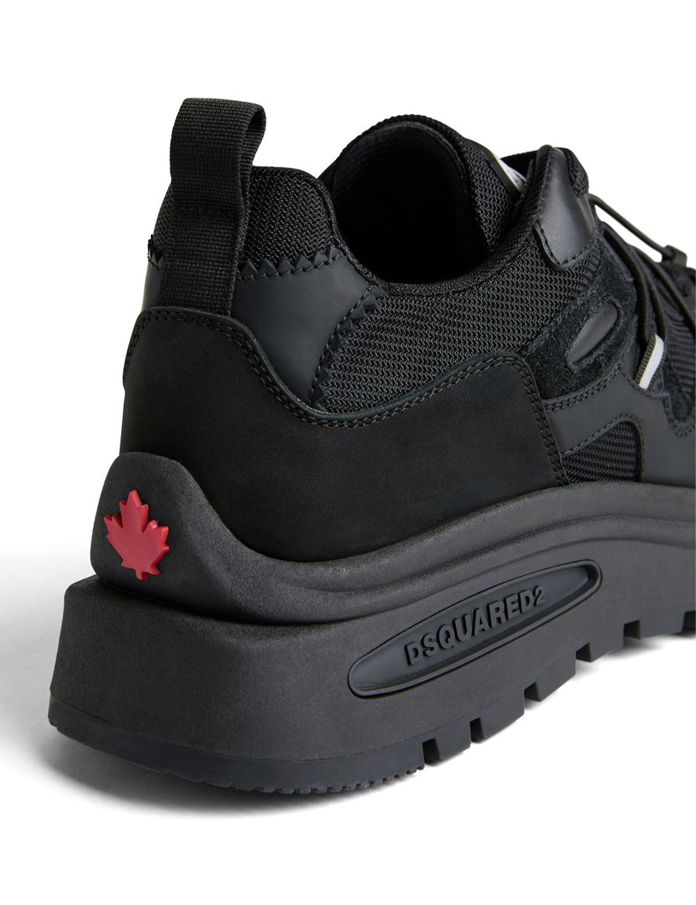 Run Ds2 sneakers from DSQUARED2 featuring black, calf leather, panelled design, embossed logo to the side, round toe, front lace-up fastening, pull-tab at the heel, branded heel counter and chunky rubber sole.