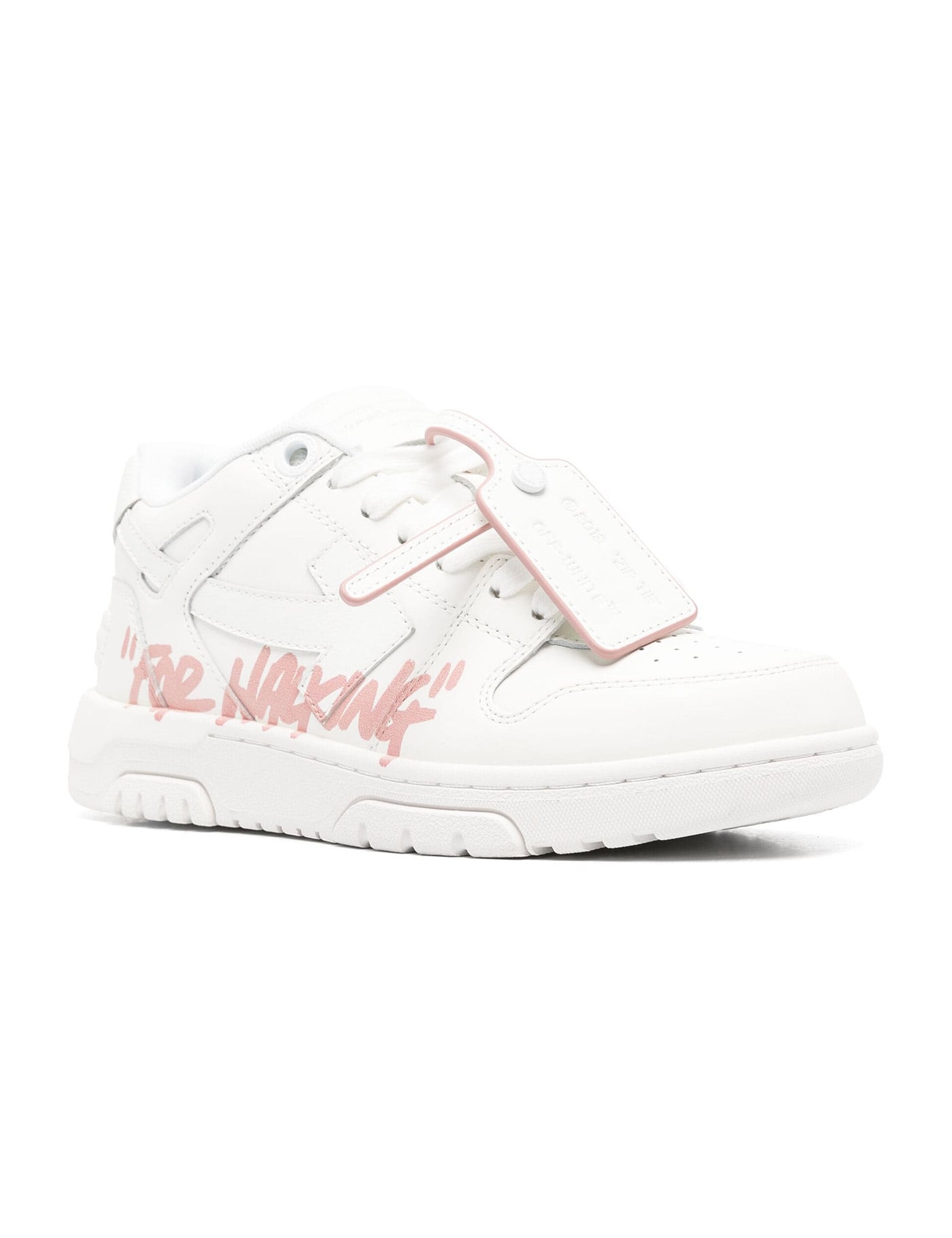 - Low sneakers Out of the office - White leather with pink "FOR WALKING" writing on the side - Side arrows and tone-on-tone Zip-Tie label - White rubber sole