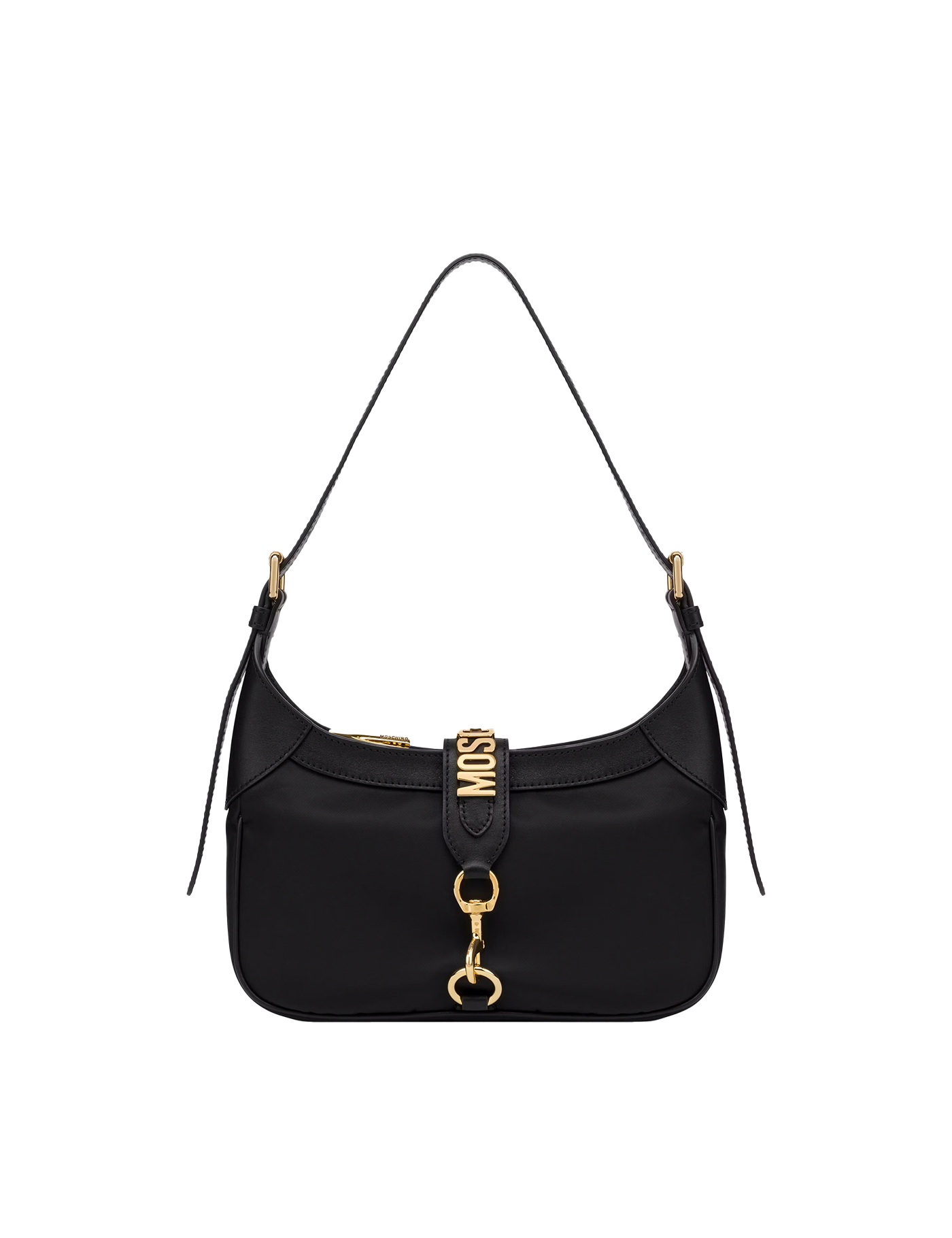 Black twill weave leather trim logo lettering ring embellishment logo pendant foldover flap adjustable shoulder strap main compartment internal zip-fastening pocket debossed internal logo gold-tone hardware lobster claw fastening this piece comes complete with a protective dust bag.