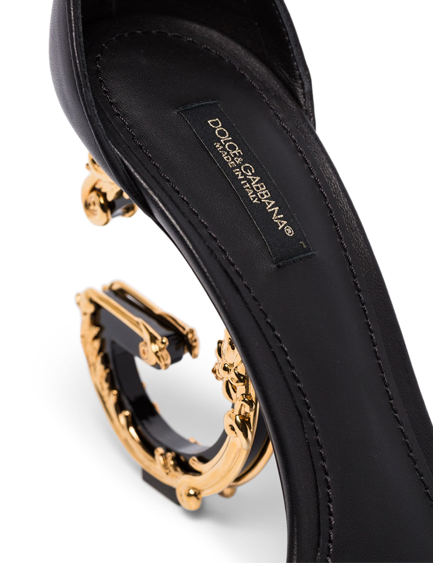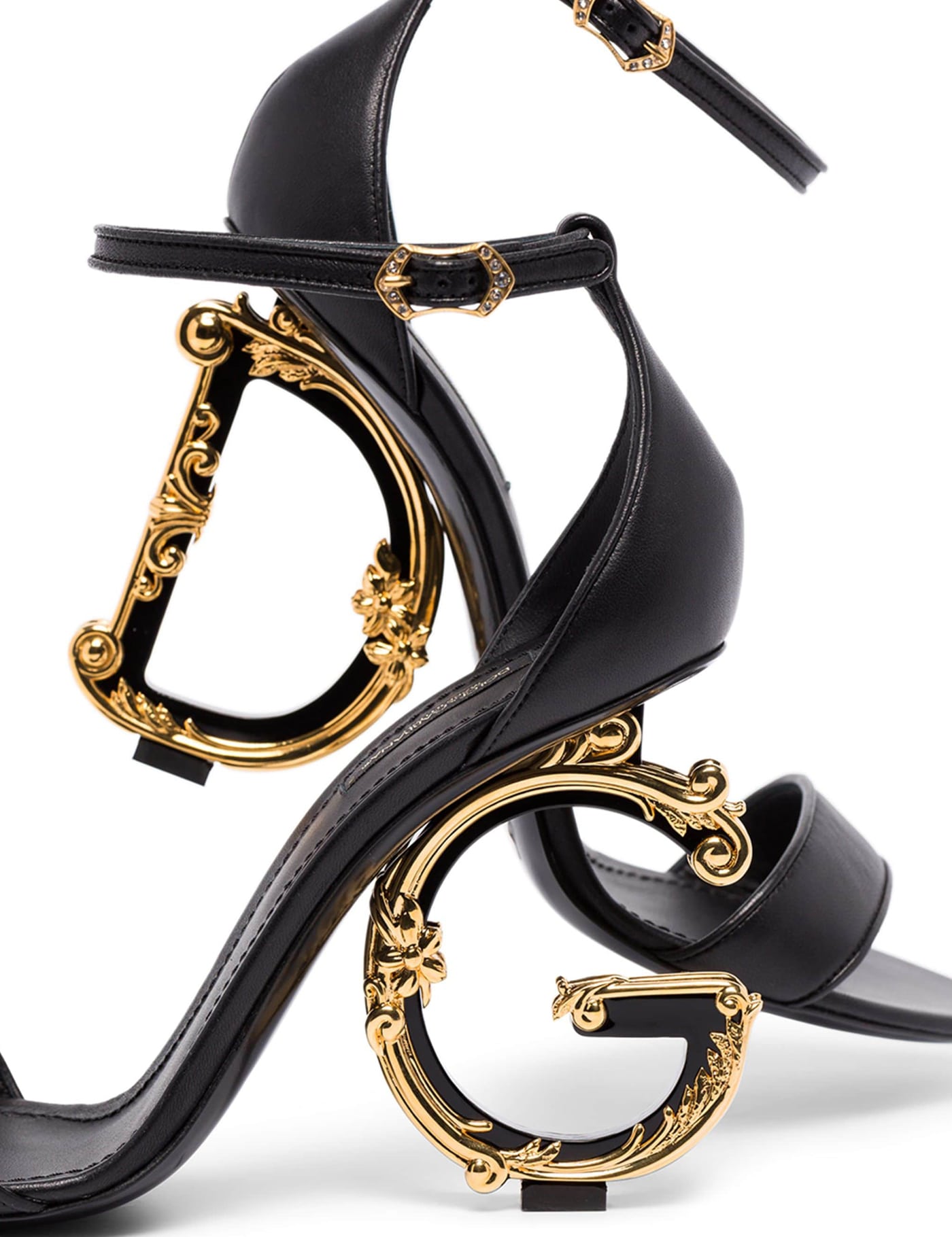Elegant Dolce & Gabbana 'Devotion' leather sandals with a gold metal logo, a sequin ankle strap