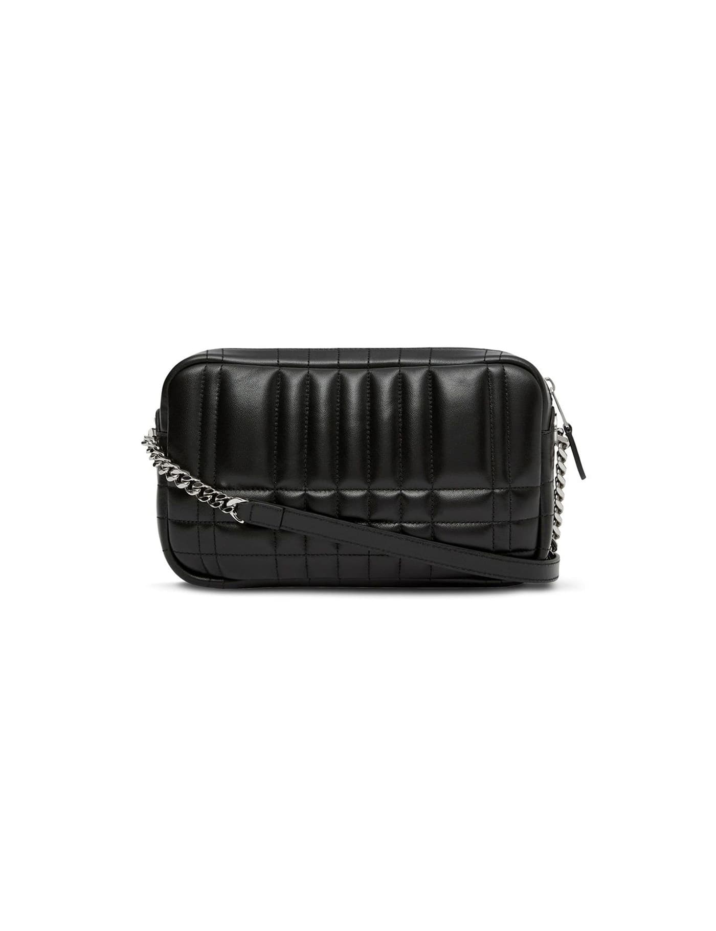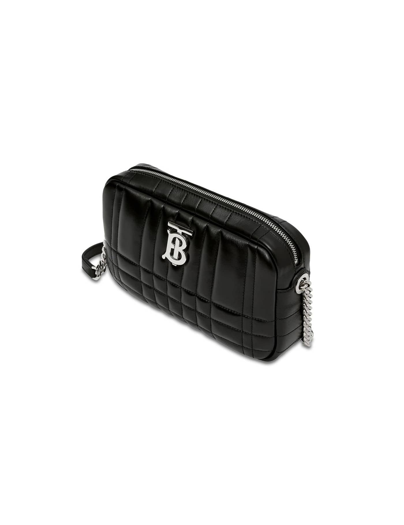 Lambskin Lola Shoulder Bag by Burberry, magnetic button closure on front flap, all-over quilted and padded design, tone-on-tone topstitching, iconic gold-plated and appliquéd brand monogram on front, sliding chain shoulder strap, interior welt pocket.