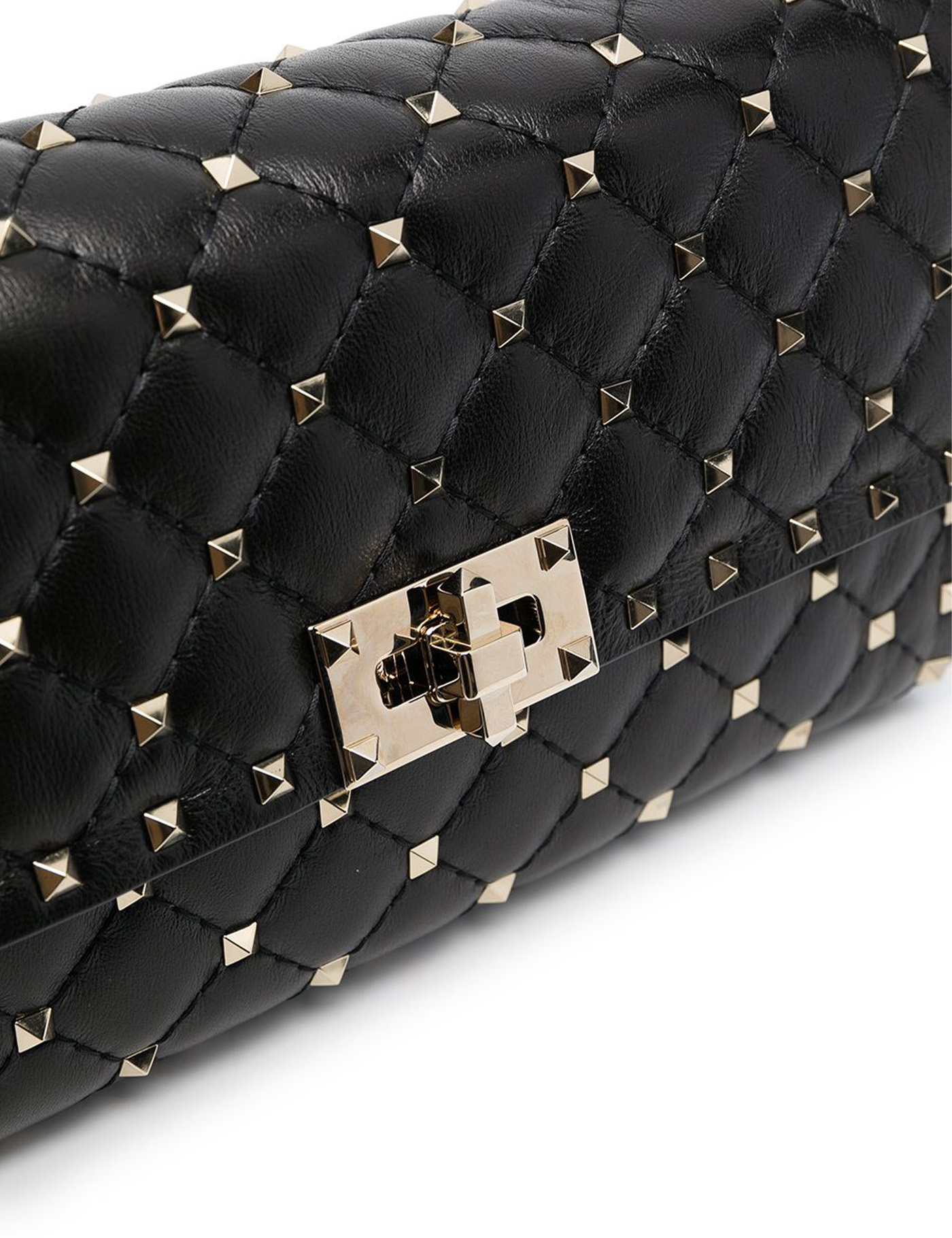 Black nappa leather Rockstud spike clutch Width: 23 cm Height: 13 cm Depth: 4 cm Shoulder strap length: 52 cm