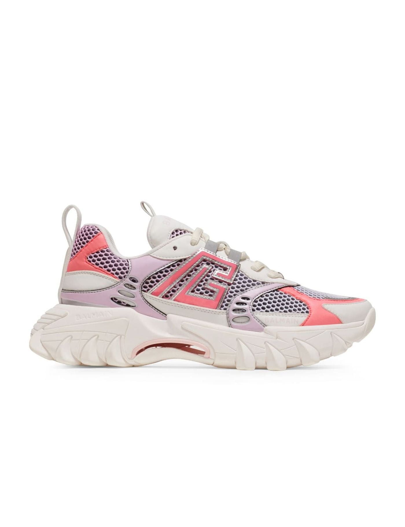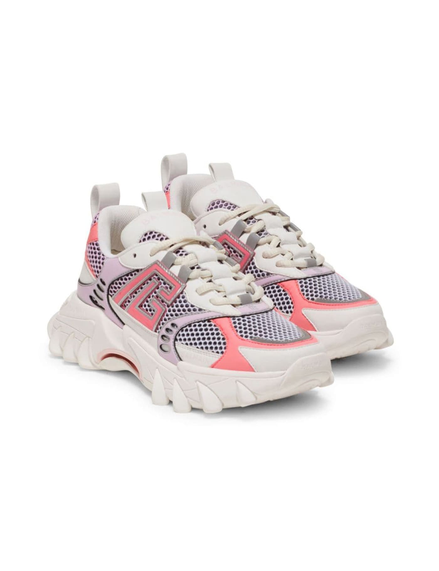 Sneakers in technical material and mesh White and pink color Upper in leather, rubber, mesh and reflective fabric Lace closure Balmain logo printed on the tongue and side Front and back leather tongue detail Fabric lining Smooth leather insole Sole height: 5.5 cm Top height: 6cm Main material: 100% polyester