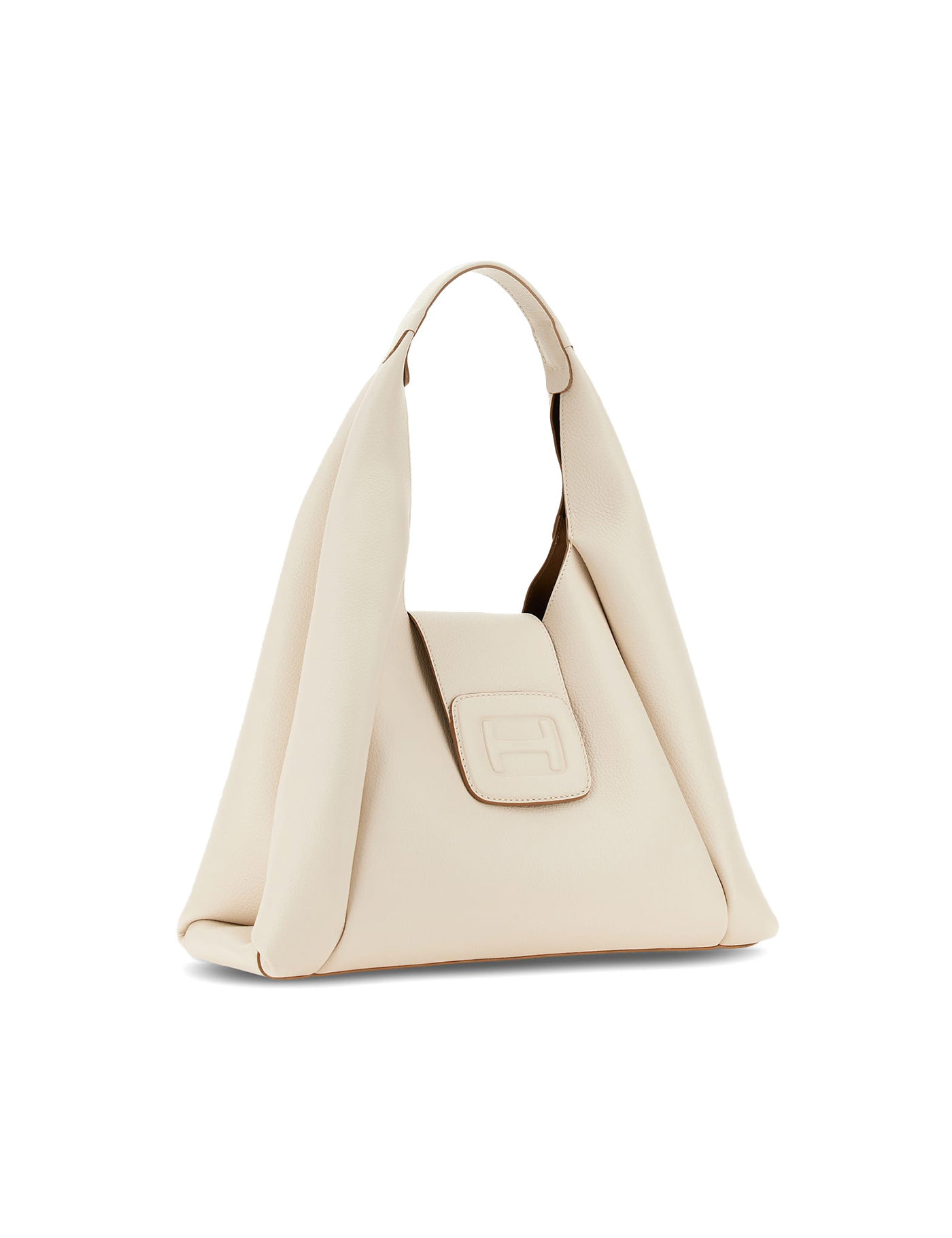 - Medium 'H-Bag' bag - Beige - Embossed logo - Grain texture - Embossed logo on the front - Two top handles - Adjustable and detachable shoulder strap - Divided compartment - Internal zip pocket