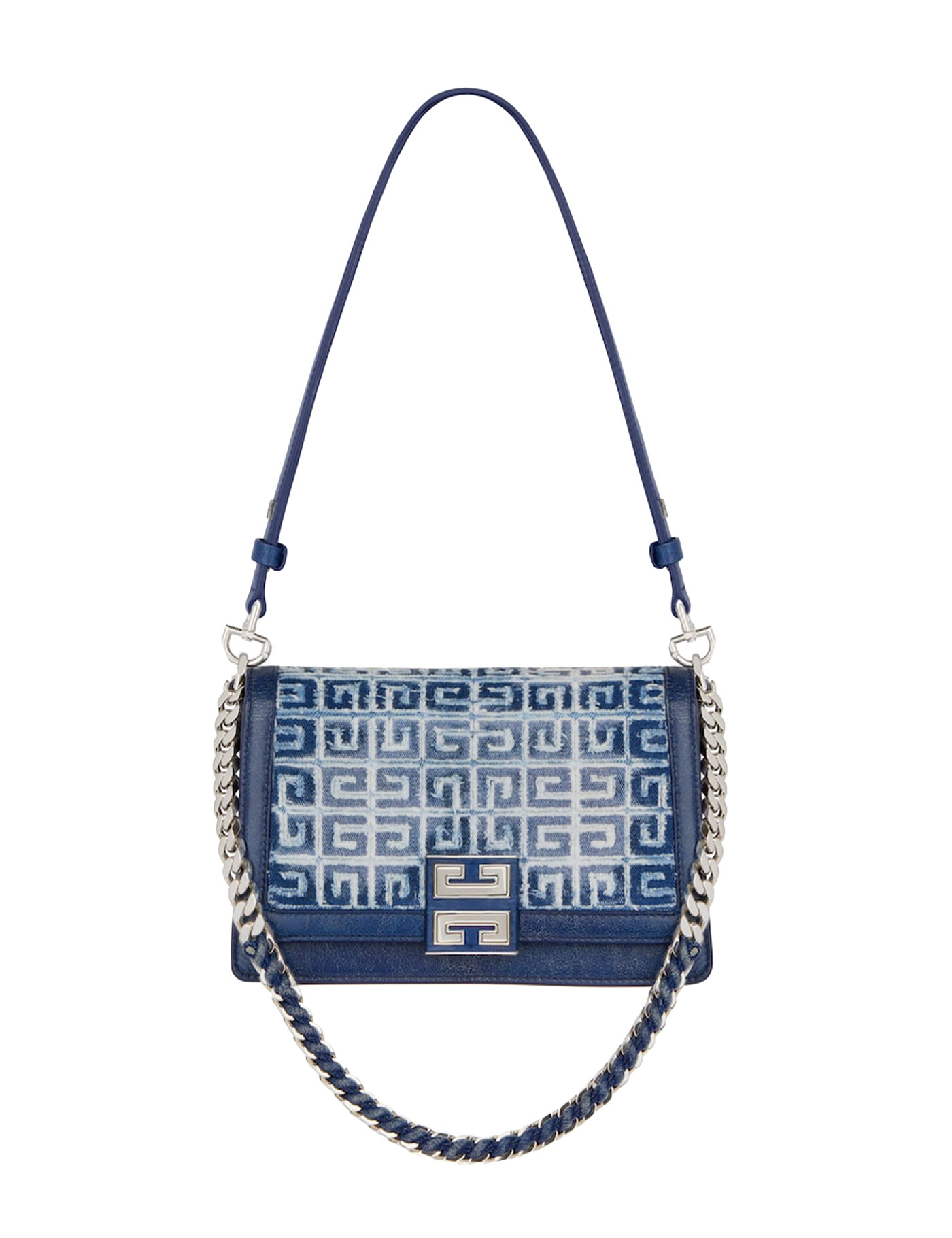 Two-tone denim and leather medium Multicarry shoulder bag Width: 22 cm Height: 17 cm Depth: 8 cm Handle height: 25 cm Shoulder strap length: 50 cm