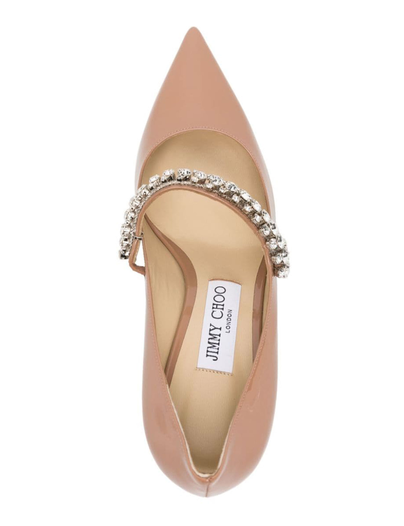 powder pink calf leather patent finish tonal stitching pointed toe crystal embellishment toe strap slip-on style 65mm stiletto heel branded leather insole leather lining