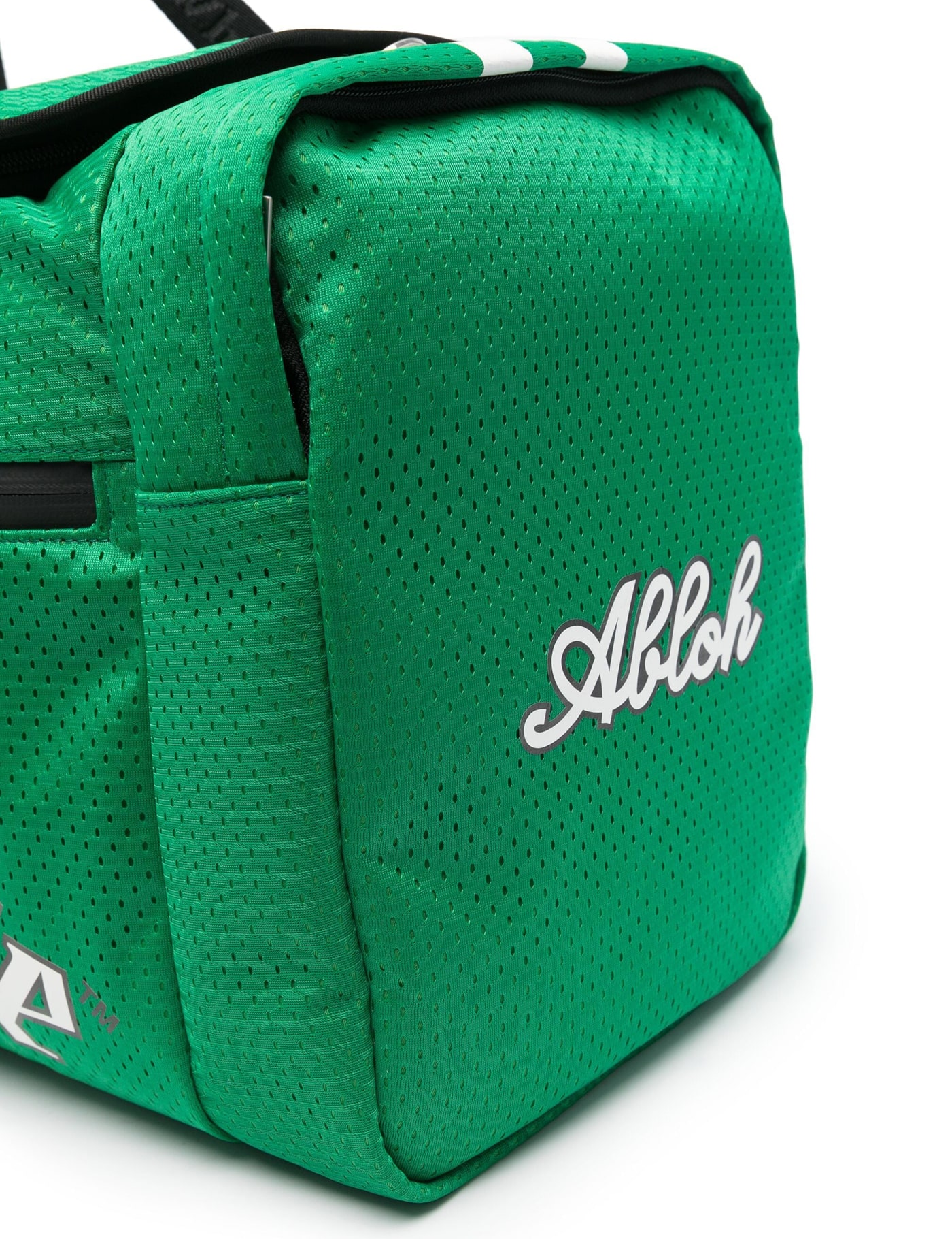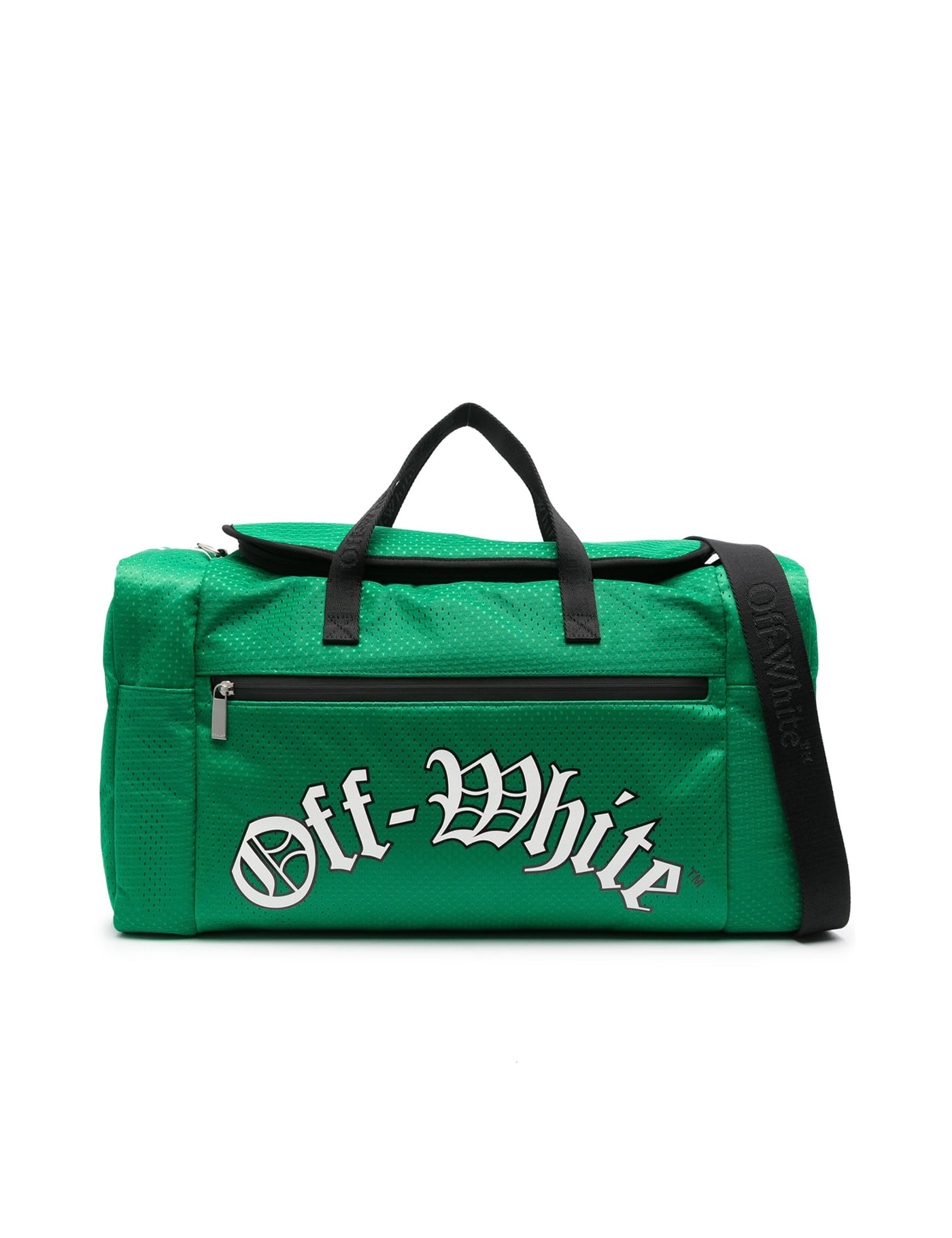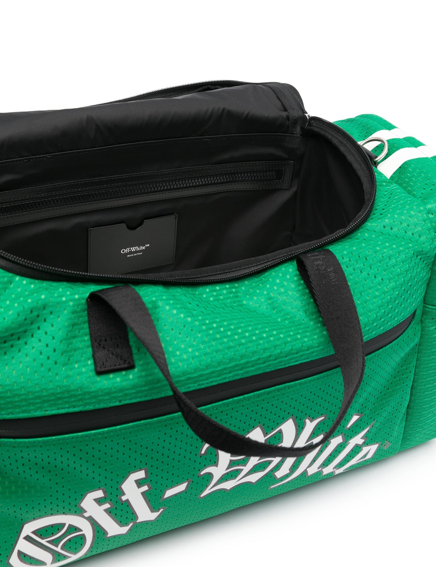 Grass green mesh design stripe detailing logo print to the front front zip-fastening pocket two side zip-fastening pockets 'abloh' and numerical print to the sides rear zip-fastening pocket flat top handles adjustable logo-jacquard shoulder strap main compartment internal logo stamp internal zip-fastening pocket internal card slot full lining silver-tone hardware top zip fastening this piece comes complete with a protective dust bag.