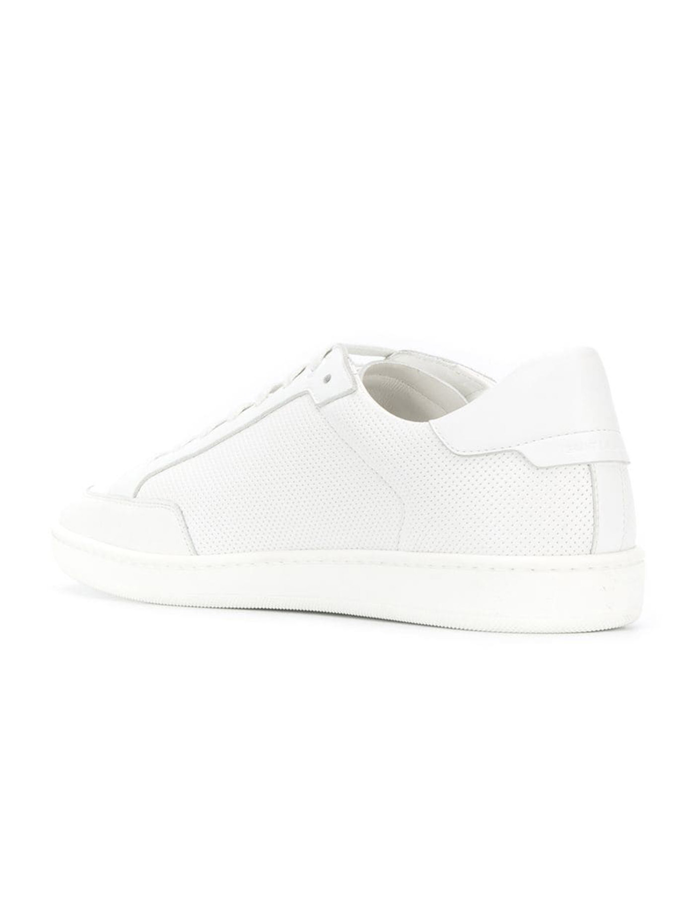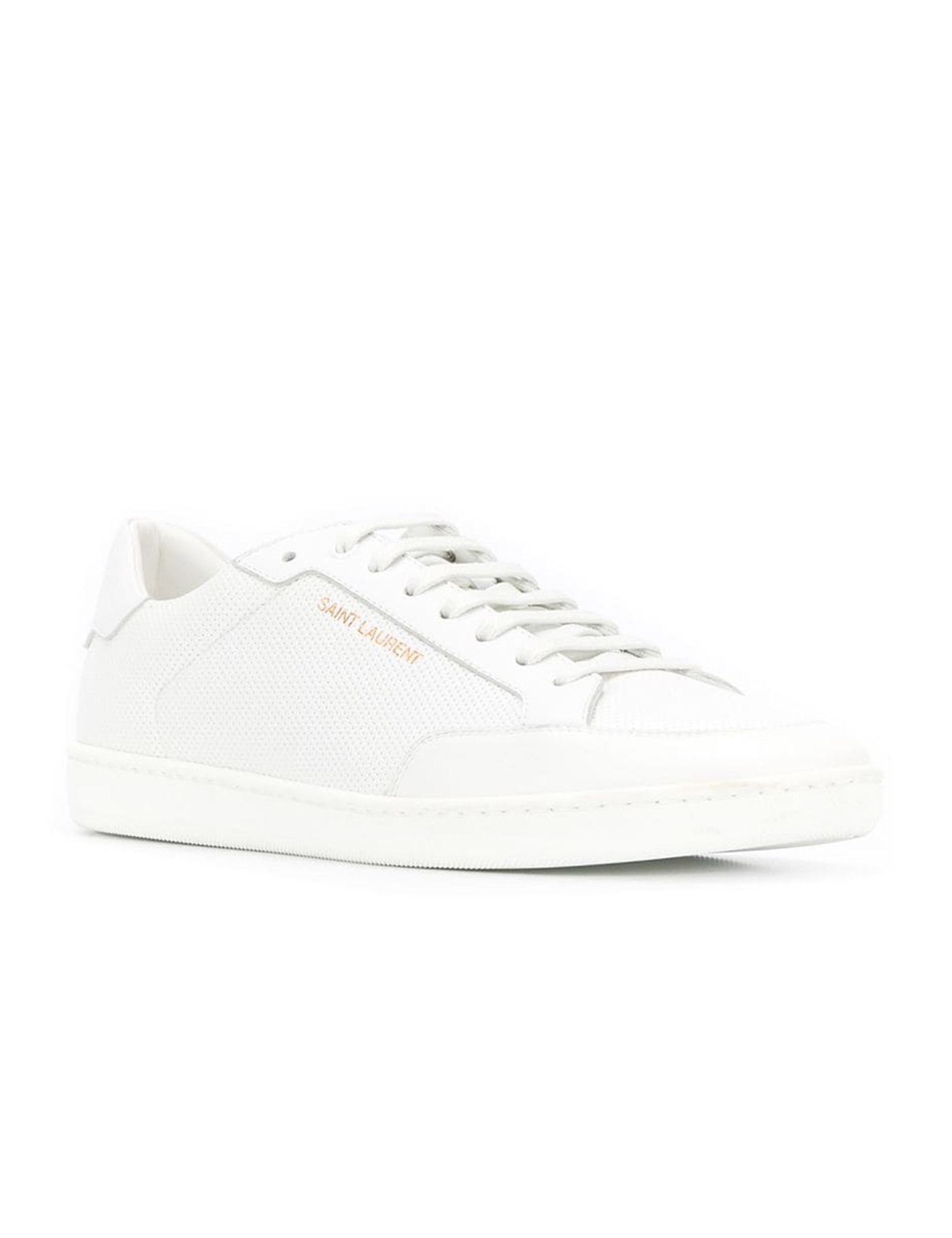 Court Classic SL/10 sneakers in black perforated calfskin. They feature lace-up closure, Saint Laurent logo on the side and on the back and rubber sole. Any leather imperfections are not to be considered manufacturing defects, but a peculiarity of the material.