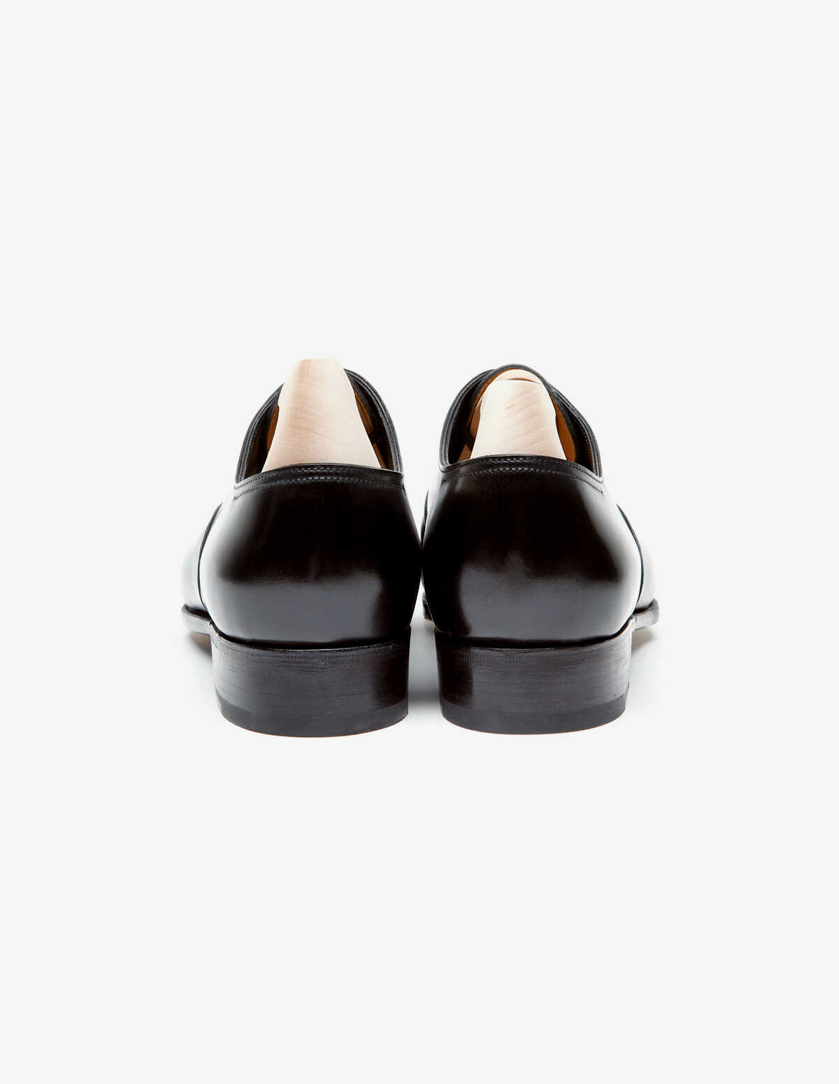 John Lobb oxford shoes in black leather, entirely hand-sewn, stitching on the front, round toe, leather sole, E fitting.