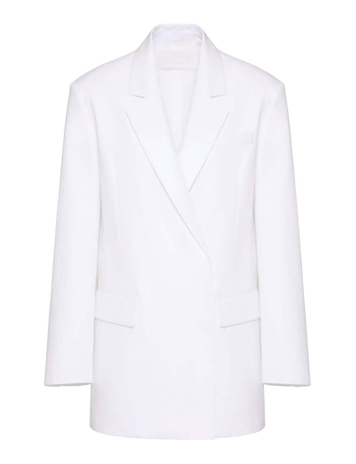 Double-breasted jacket in white cotton. It features peaked lapels, front press-stud closure, two front flap pockets and a welt pocket on chest. Regular fit.