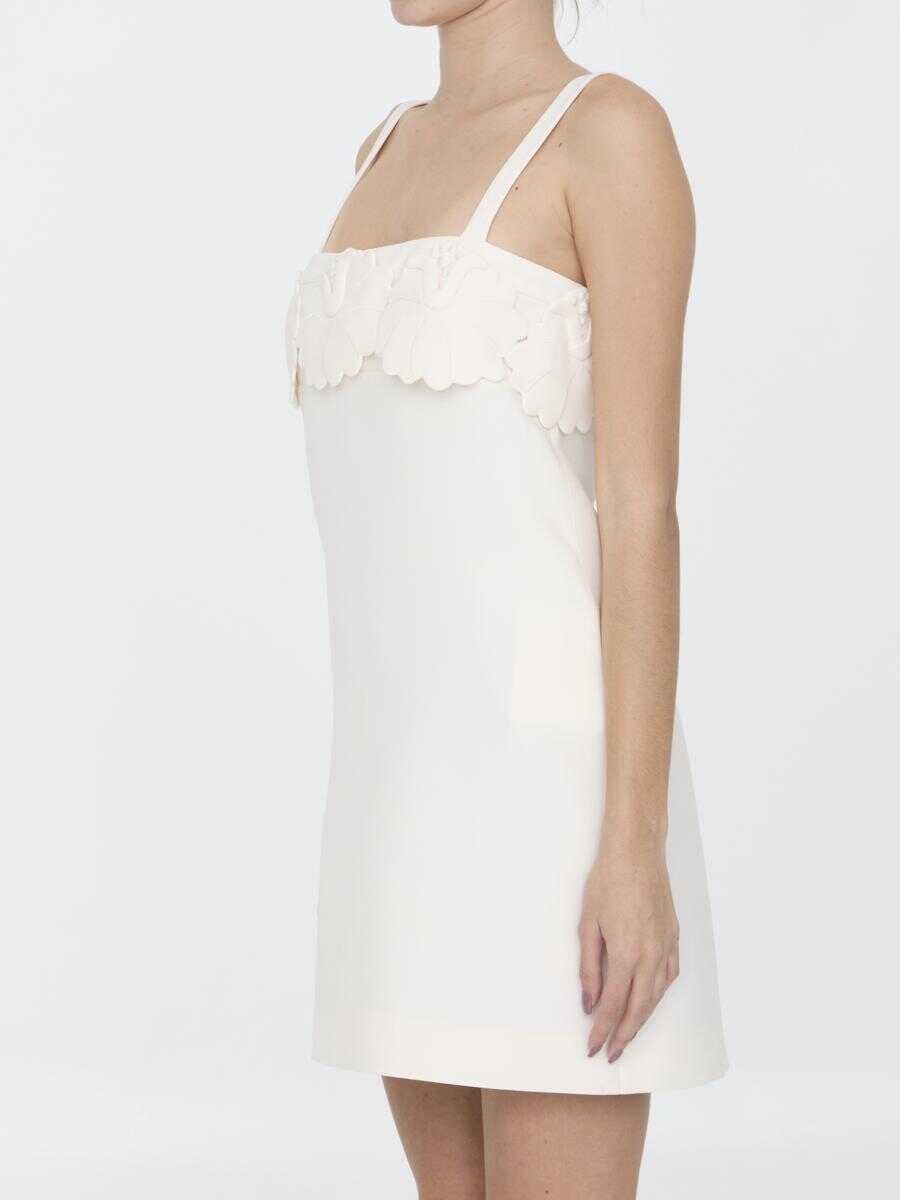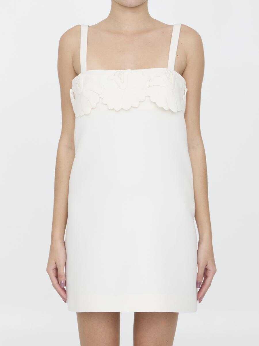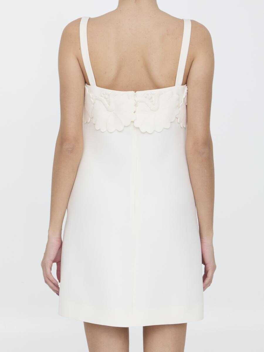 Ivory Crepe Couture short dress with embroidered details. It features square neckline and rear zip, hook-and-eye and press-stud closure. Regular fit.