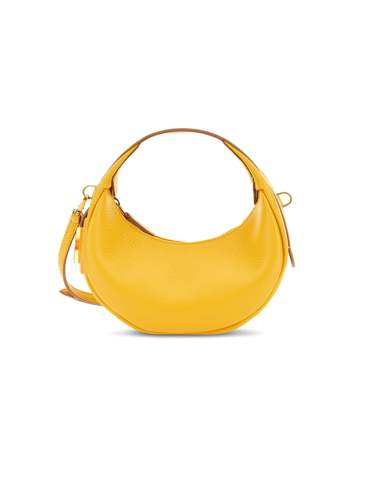 Mini round bag made of textured leather. Side H accessory with Hogan logo. Zipper closure. Fabric lining. Fixed handle, adjustable and removable shoulder strap.
