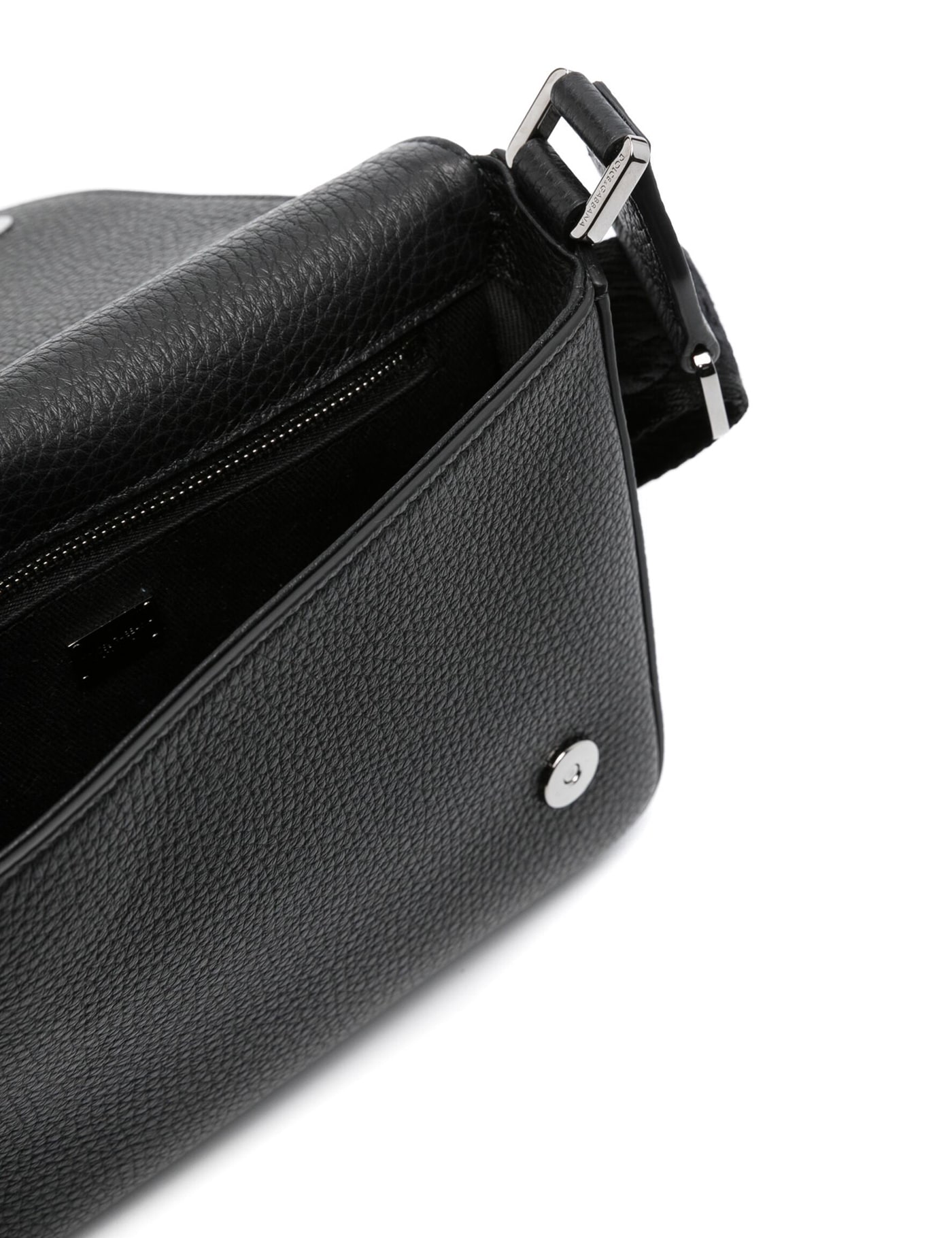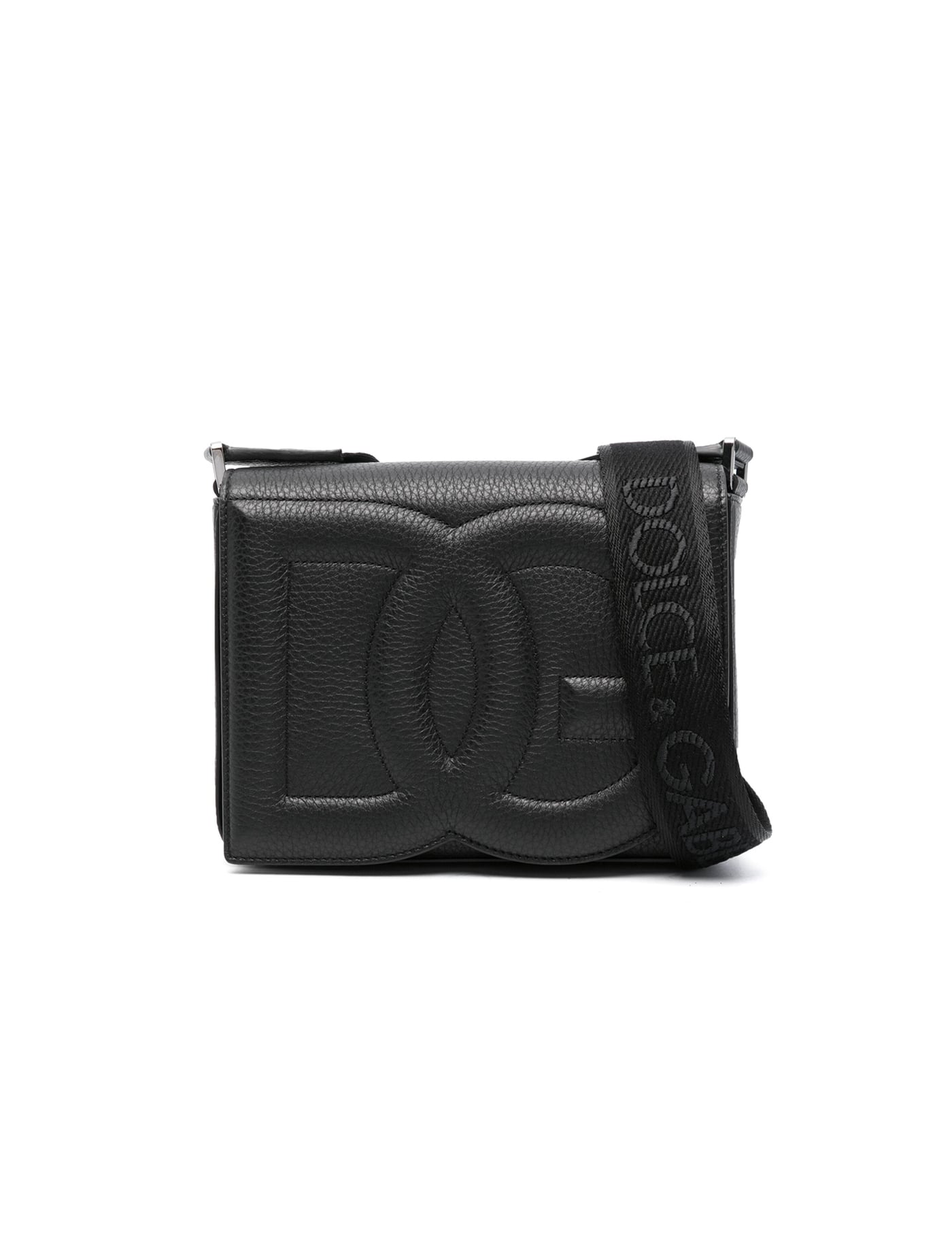 This medium-sized Dolce & Gabbana shoulder bag is made of hammered leather and features a flap with a large, stitched DG Logo. It has a magnetic closure with double buttons, a fabric interior with a zip pocket, an adjustable and removable shoulder strap in tonal jacquard ribbon with matching logo, and silver-finished metal accessories.