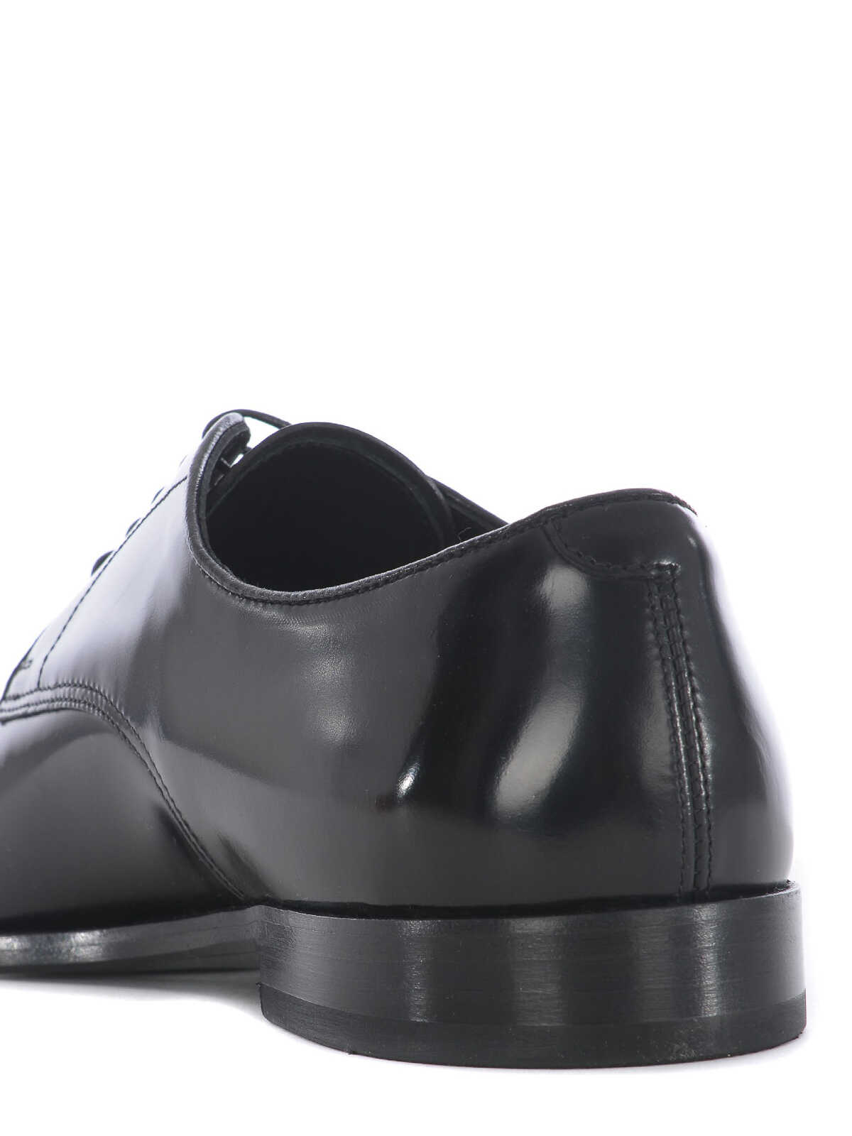 Doucal`s oxford shoe, in black brushed leather, leather sole.