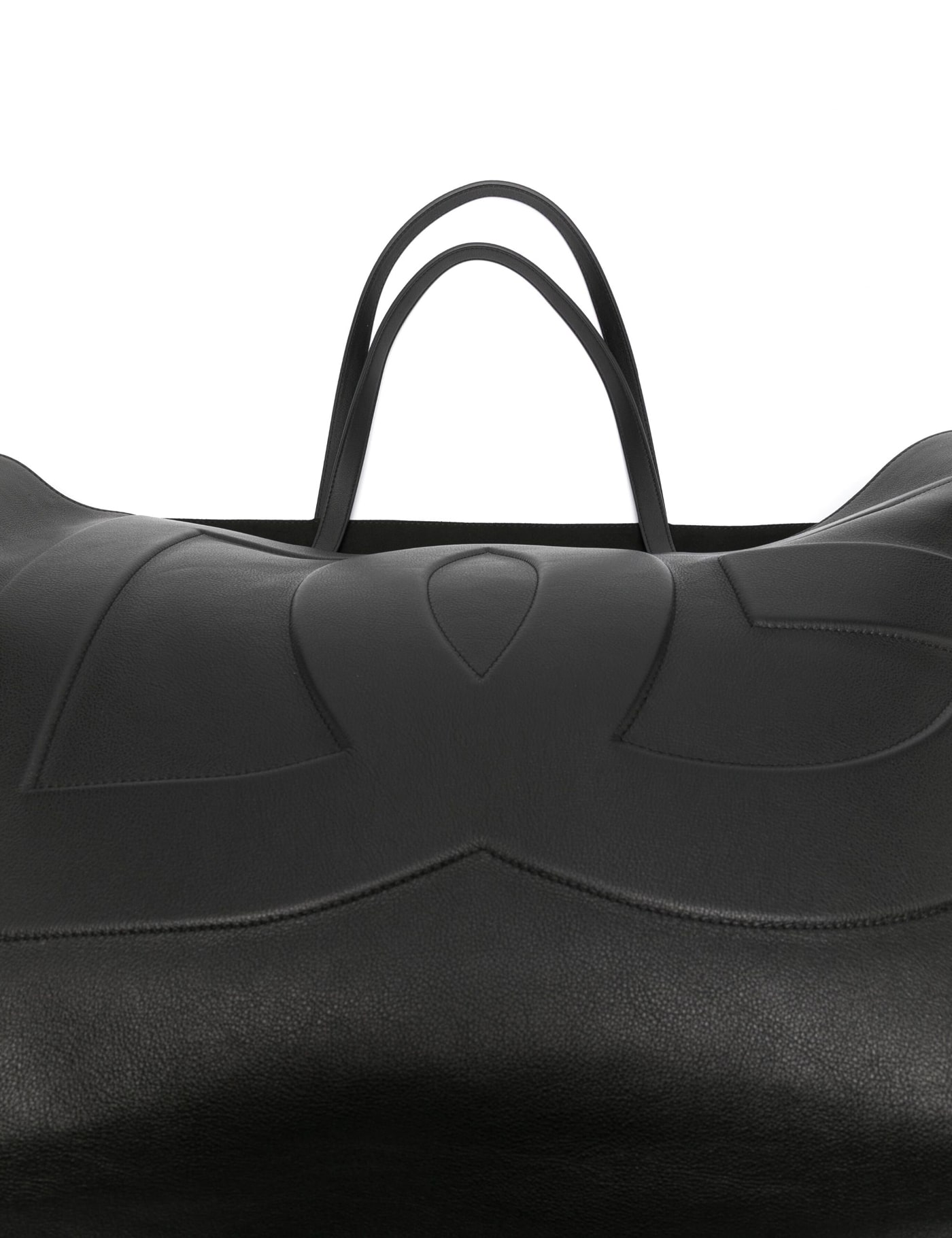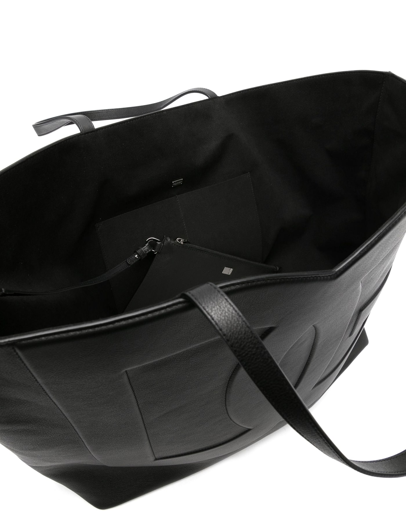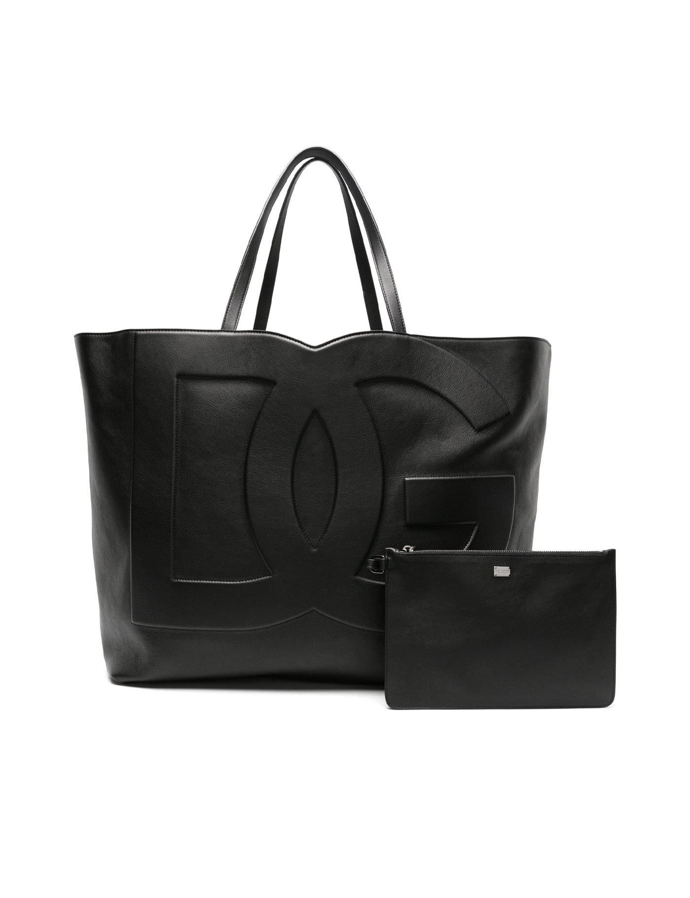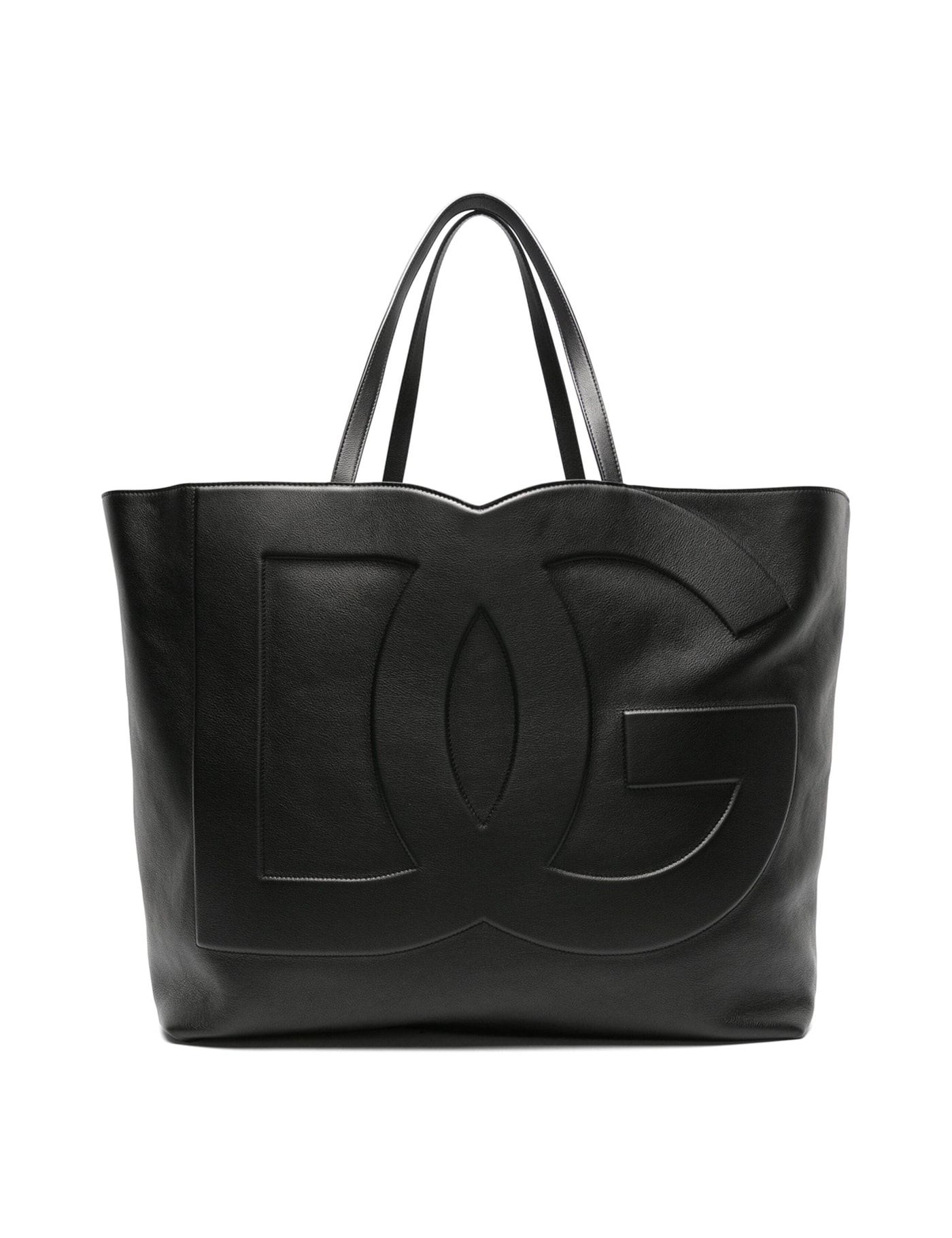 The Dolce & Gabbana large shopping bag is made of nappa calf leather and features the iconic quilted DG Logo on the front. The interior is lined with suede and has two open pockets, a removable nappa pouch with zip closure, and a metal logo plaque. It also has a double top handle and metal accessories with a ruthenium finish.