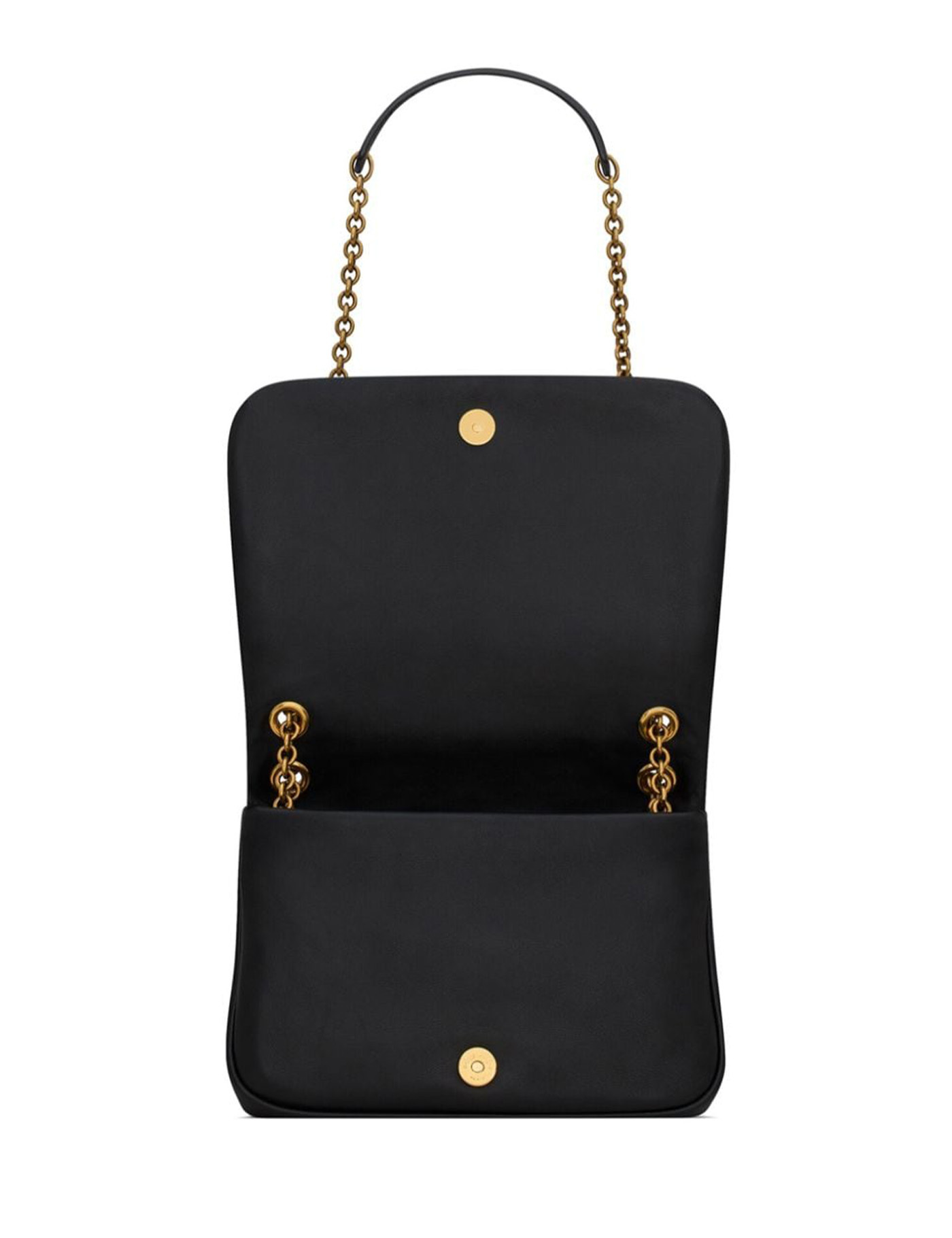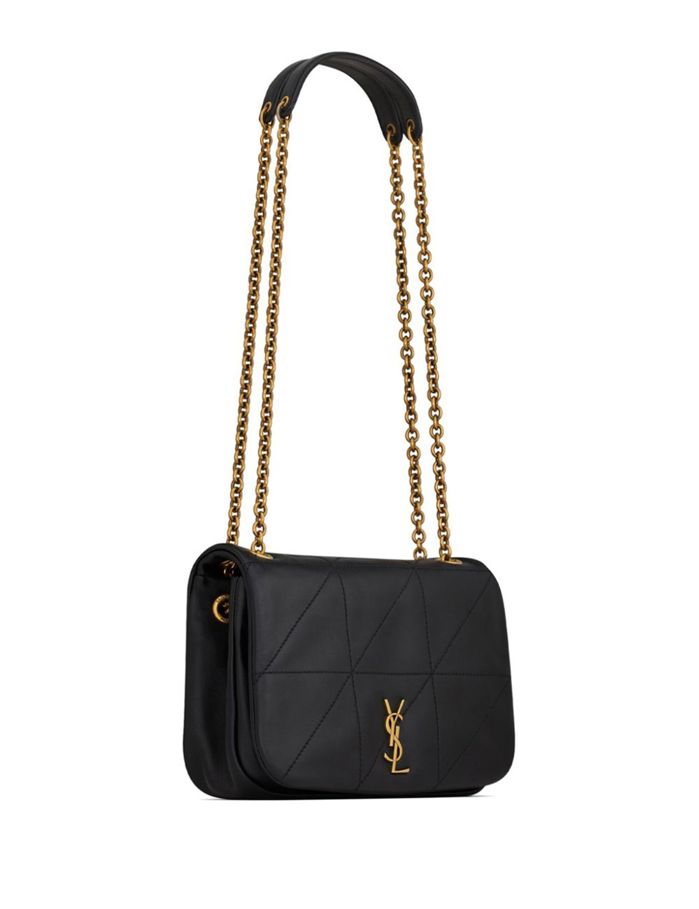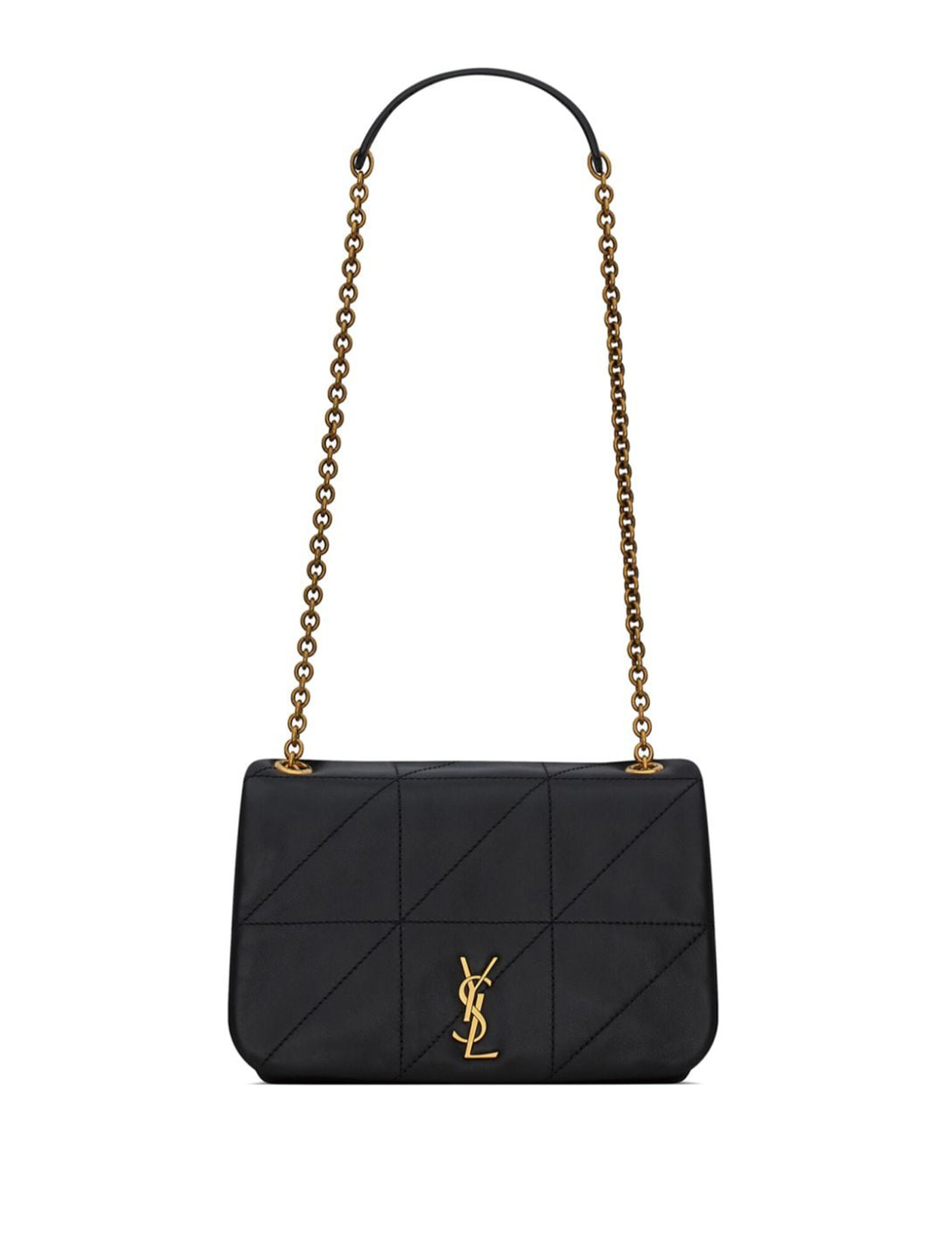 Jamie 4.3 Mini Bag in soft black quilted lambskin with bronze-tone metal YSL monogram on the front. It features leather and chain shoulder strap, magnetic closure, one main interior compartment and one interior flat pocket. Any leather imperfections are not to be considered manufacturing defects, but a peculiarity of the material.