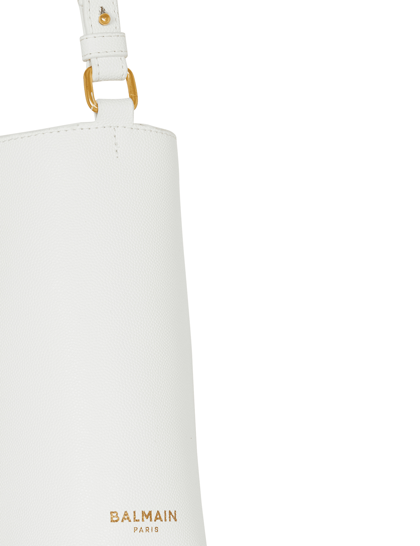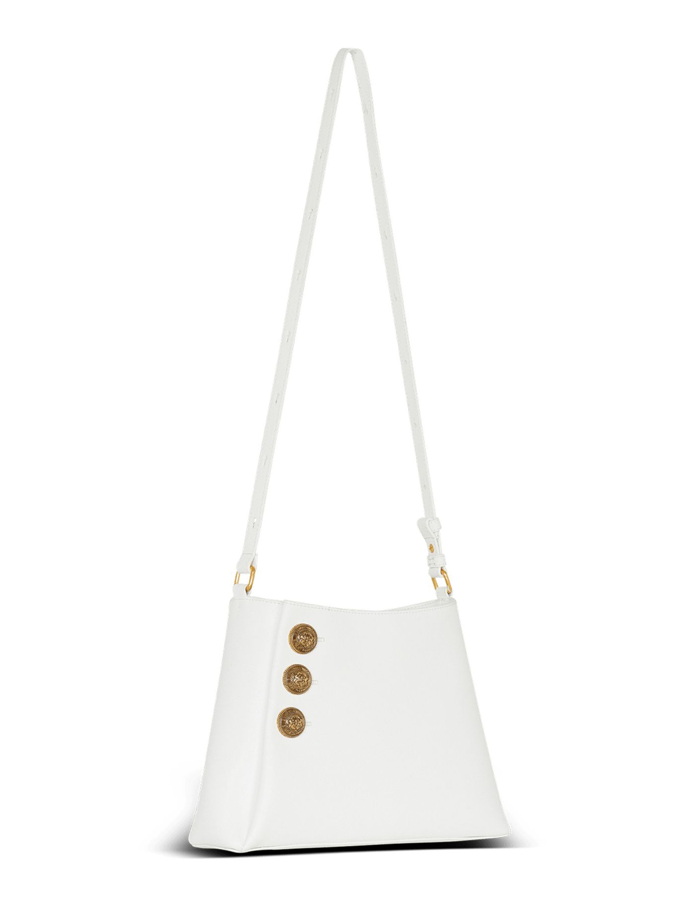 White calf leather grained texture logo-embossed buttons gold-tone hardware adjustable shoulder strap magnetic fastening main compartment internal zip-fastening pocket
