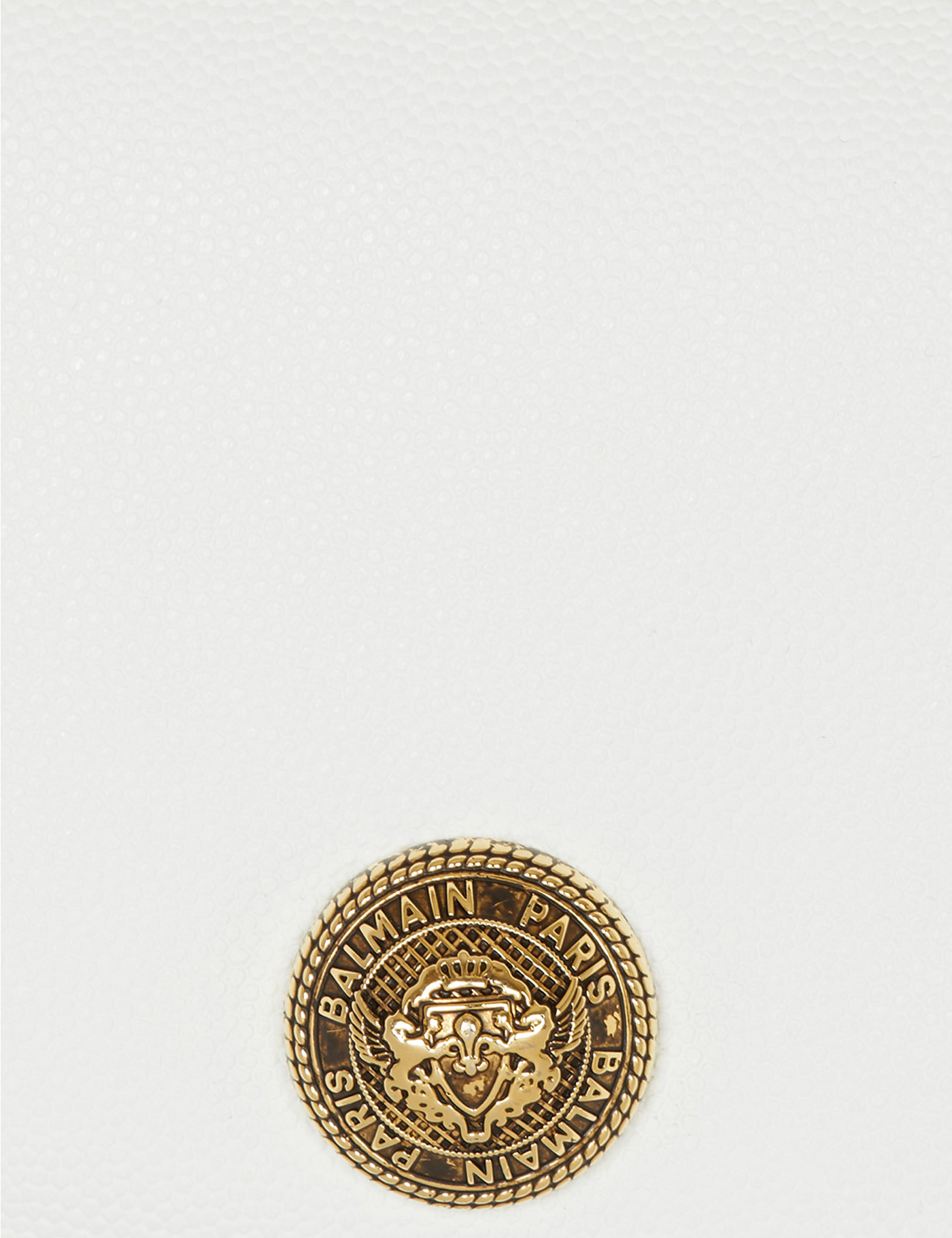 Off-white calf leather grained texture logo plaque detachable wallet chain foldover top with magnetic fastening internal card slots gold-tone hardware