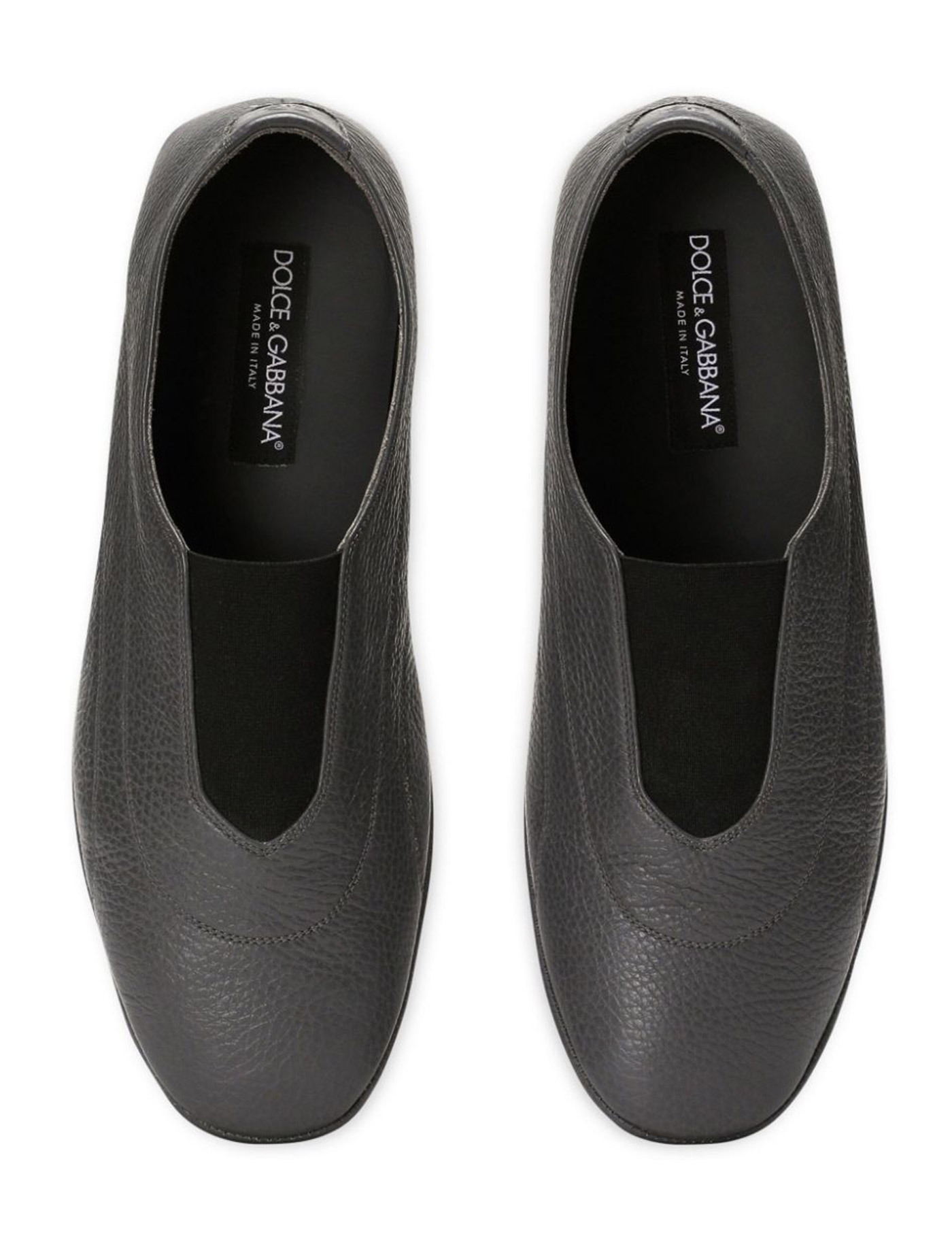 Dolce & Gabbana slipper made of hammered deer leather with elastic insert and typical rubber driver sole. Leather interior with removable insole.