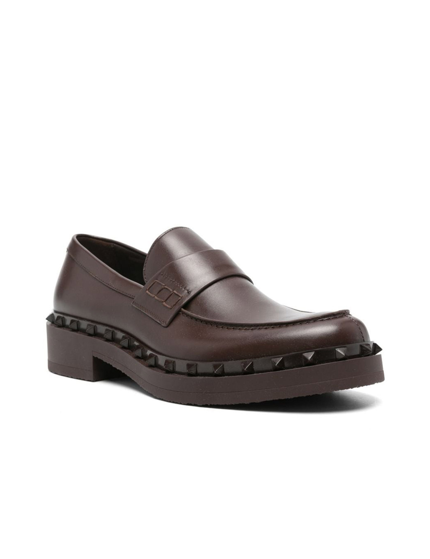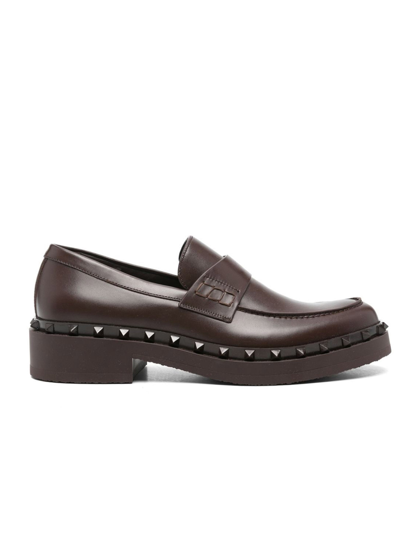 "Rockstud M-Way" moccasin in brown calfskin by Valentino Garavani, with rubber sole and studs. LENGTH: 140.0 Centimetres WIDTH: 140.0 Centimetres
