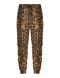 These Dolce & Gabbana jogger pants are made of nylon and feature a leopard print, contrasting side bands, and an iconic galvanized plaque applied on the back. They have an adjustable drawstring waist, French front pockets, a utility pocket on the left side, hidden zippered back pockets, and elasticized ankles. The tapered leg gives them a regular fit. The model is 187 cm tall and wears size IT 48.