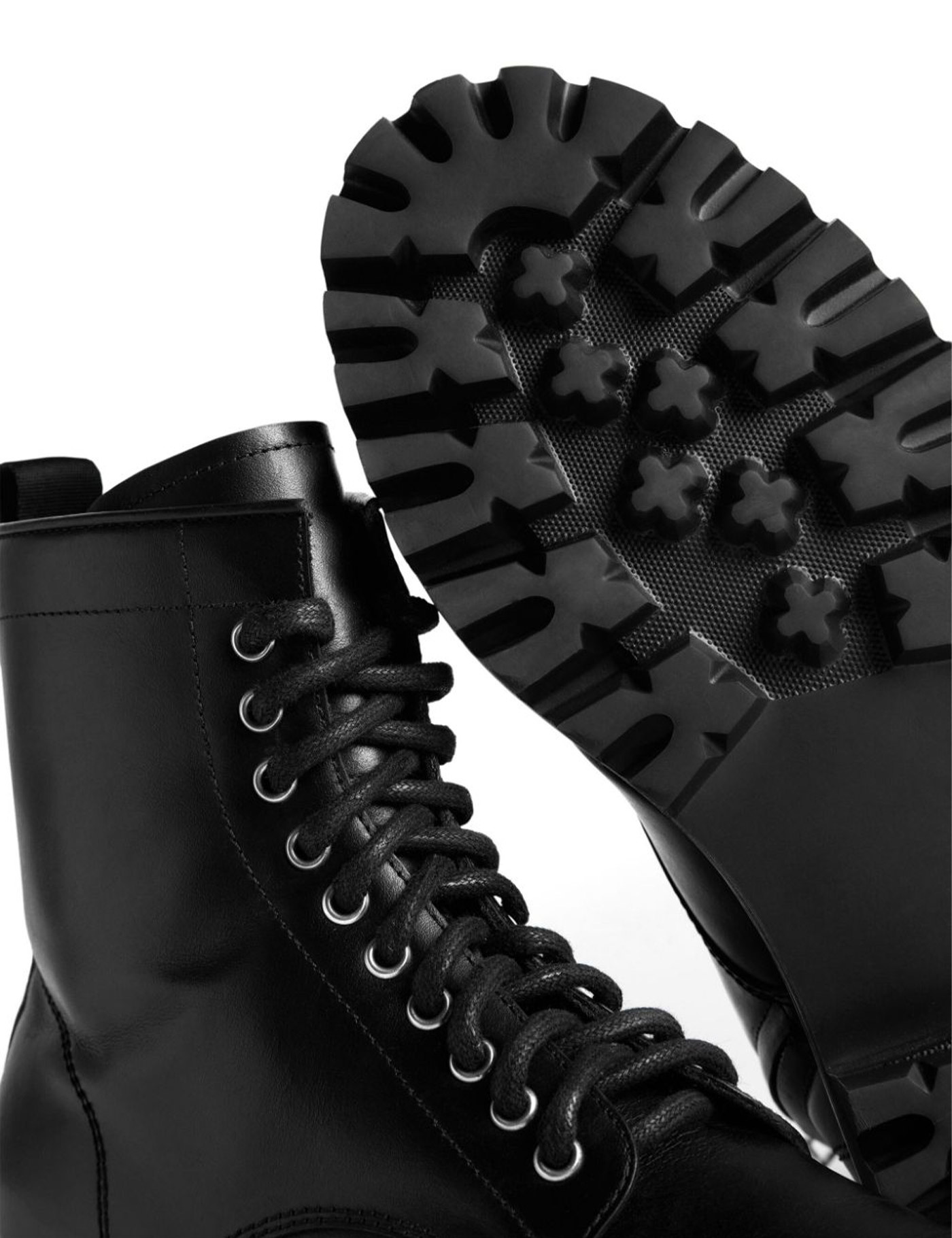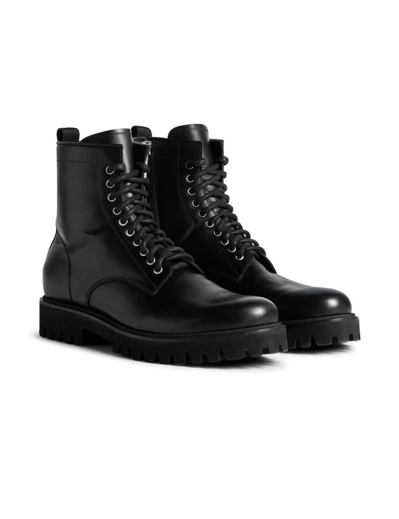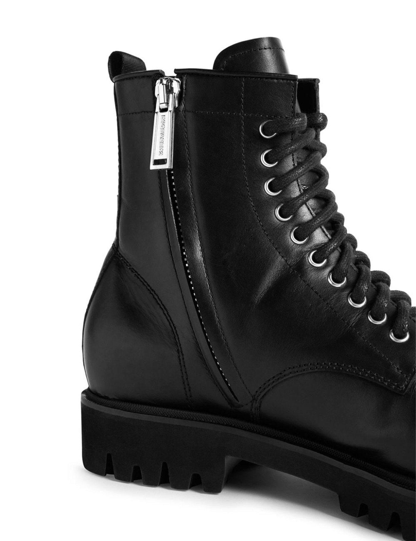 Icon leather ankle boots from DSQUARED2 featuring low block heel, ankle-length, logo pull-tab, side zip fastening, lace-up detailing, round toe, black and calf leather.