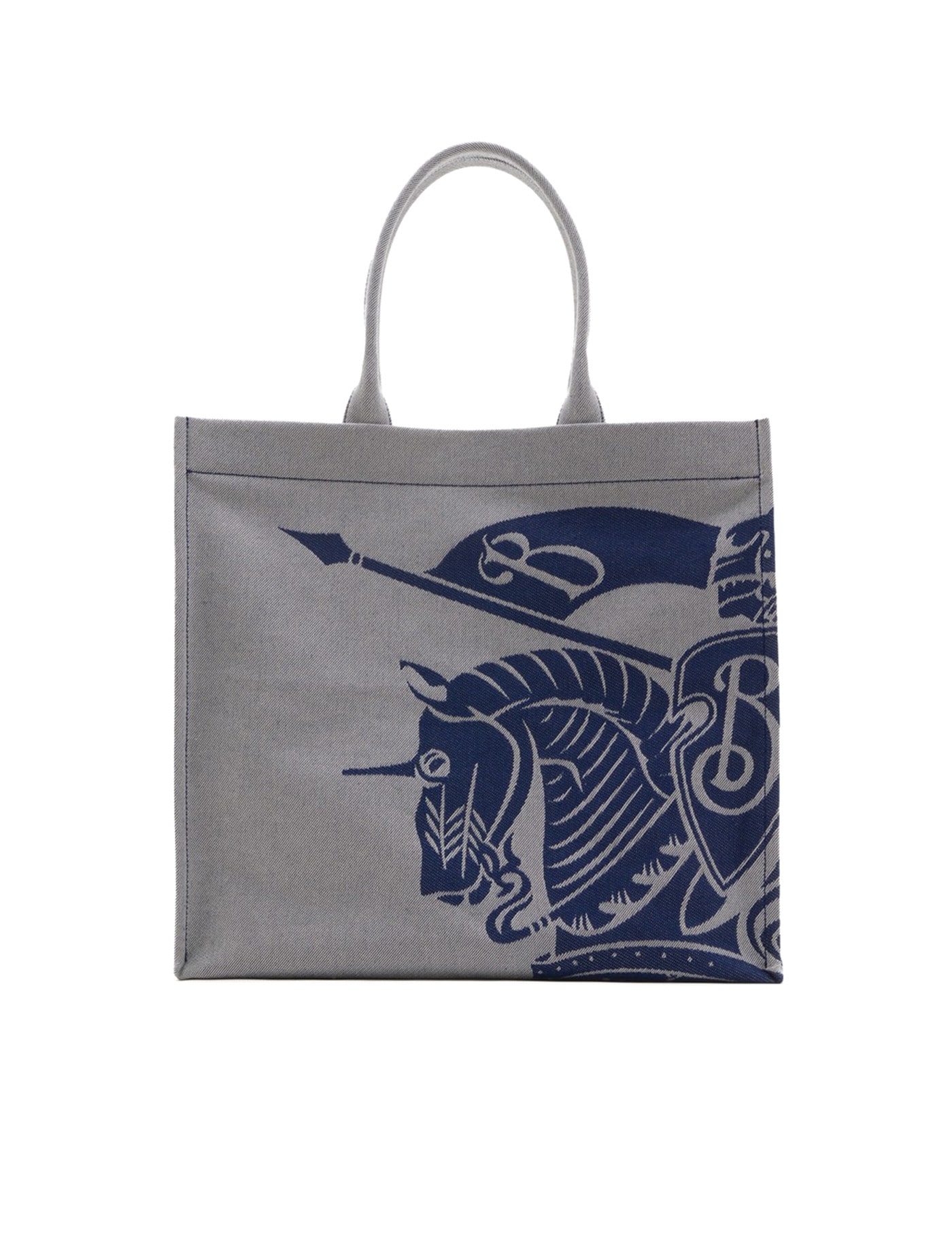 Light grey/electric blue cotton blend canvas signature equestrian knight motif jacquard two top handles open top main compartment removable pouch we've partnered with good on you — an independent agency that rates how brands perform in relation to their impact on the planet, people and animals, with a multi-criteria rating simplified to a five points scale. in order to be awarded our conscious label, larger brands need to score a minimum of four out of five ('good'), while smaller brands must score at least three out of five ('it's a start'). this item comes from a brand rated three out of five ('it's a start') by good on you at the time it was added on farfetch. please note, this is a brand-level rating and does not guarantee that this product is made with conscious materials. learn more about what makes a product conscious on our conscious criteria page