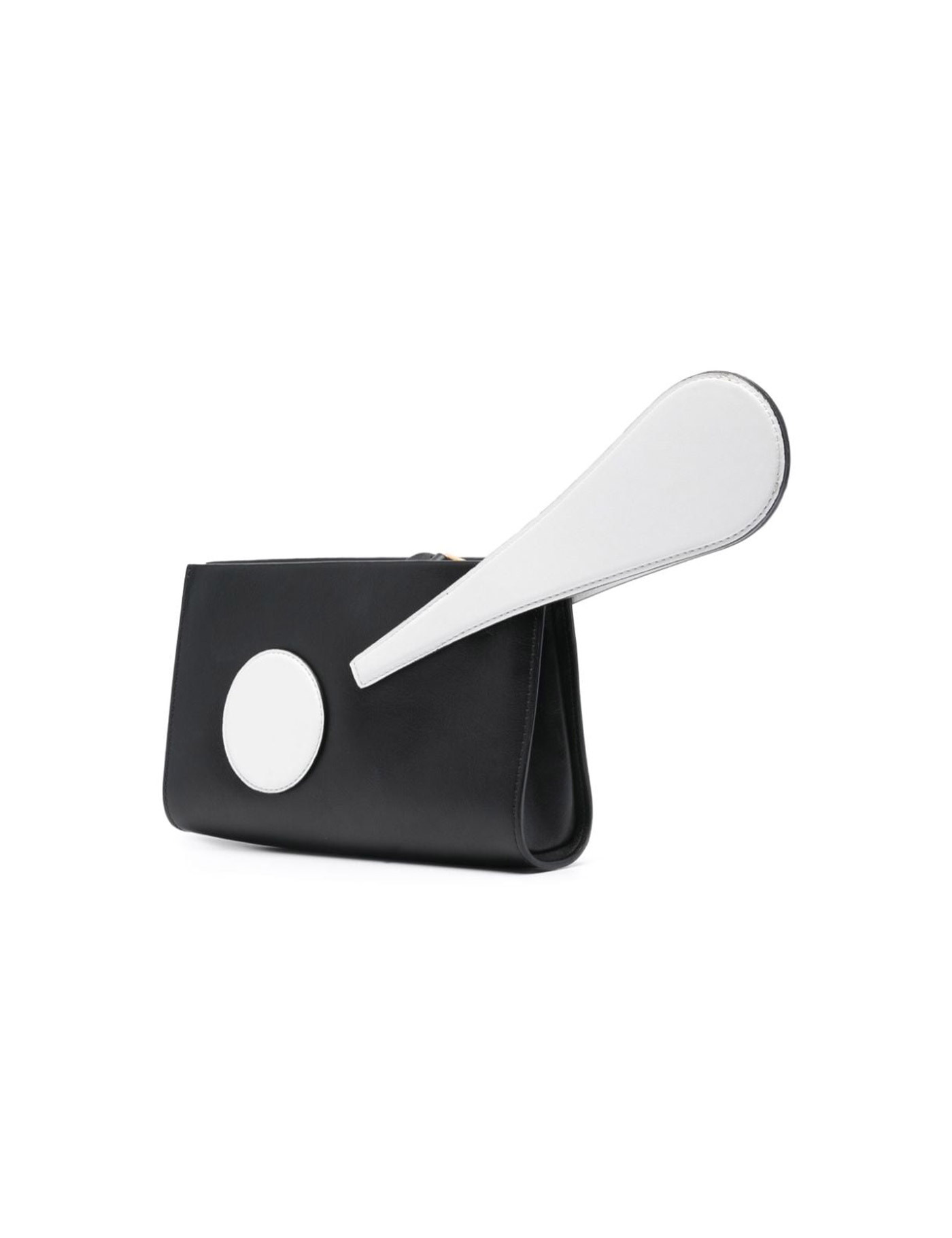 - Exclamation mark clutch bag - Black - In calfskin - Gold lettering logo - Internal slip pocket - Internal patch with logo - Full lining - Branded zip puller - Top zip closure