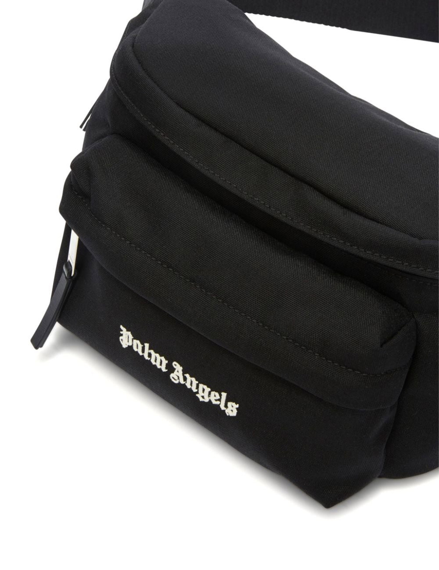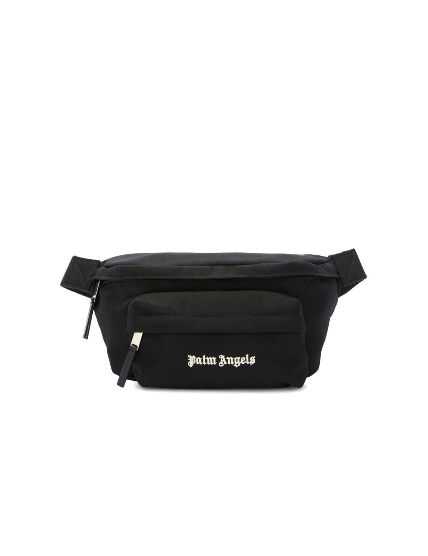 This Palm Angels fanny pack is made of technical fabric and features embroidered logo lettering in contrasting colors on the front. It has a main compartment and a front pocket with zip closures, both lined with fabric. The adjustable belt is made of webbing for added comfort.