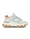 Sneakers Hogan "Hyperactive" made of White leather. Suede inserts. Stitch a view. Side drilling. Breathable round toe. Logo patch applied on the tongue. Laced. Contrasting laces Orange, Water Green. Water Green detail. Tone-on-tone "Hogan" logo lettering on the side. Orange contrasting heel. Memory foam fussbed. Rubber sole, writing on the back. 8mm raised fussbett Total height 6.2 cm
