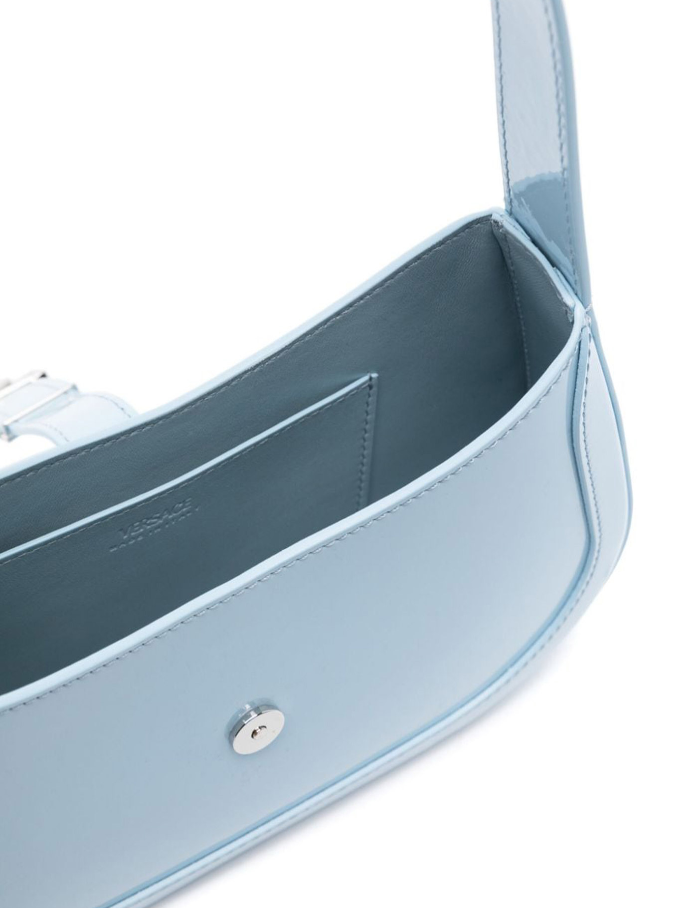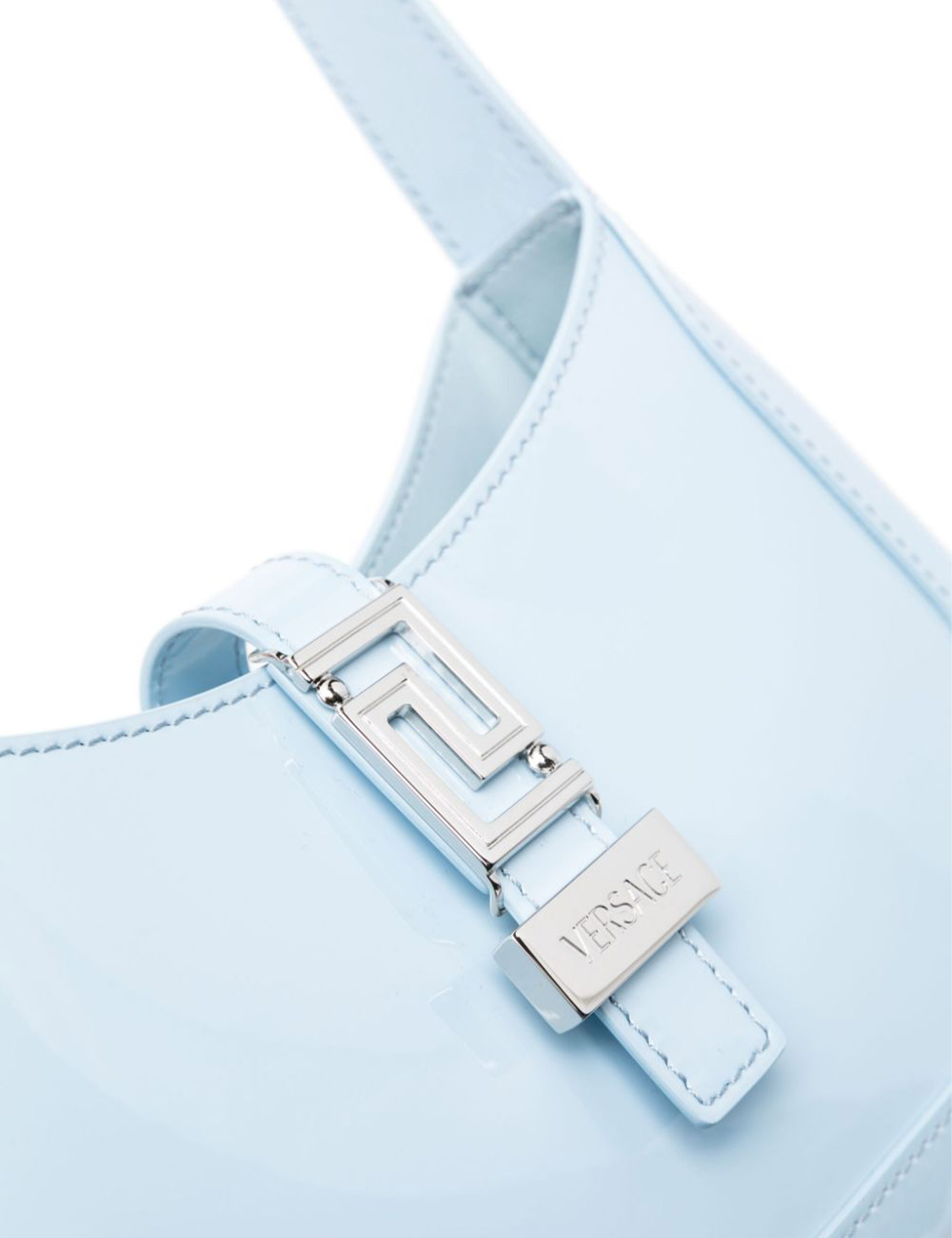 Pastel light-blue leather small Greca Goddess shoulder bag Width: 23 cm Height: 13 cm Depth: 5 cm Min handle height: 19 cm Max handle height: 22 cm