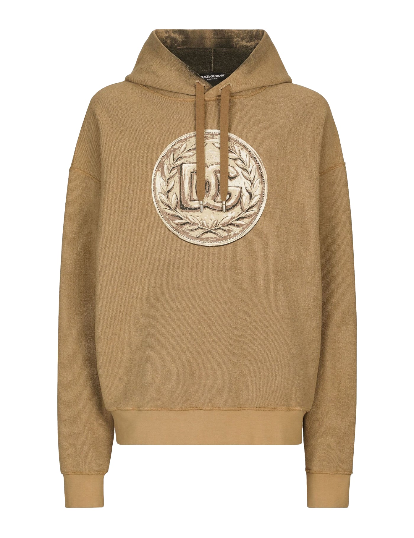 Light brown cotton sweatshirt from Dolce&Gabbana featuring print to the front, drawstring hood, long sleeves, ribbed cuffs and hem and straight hem.