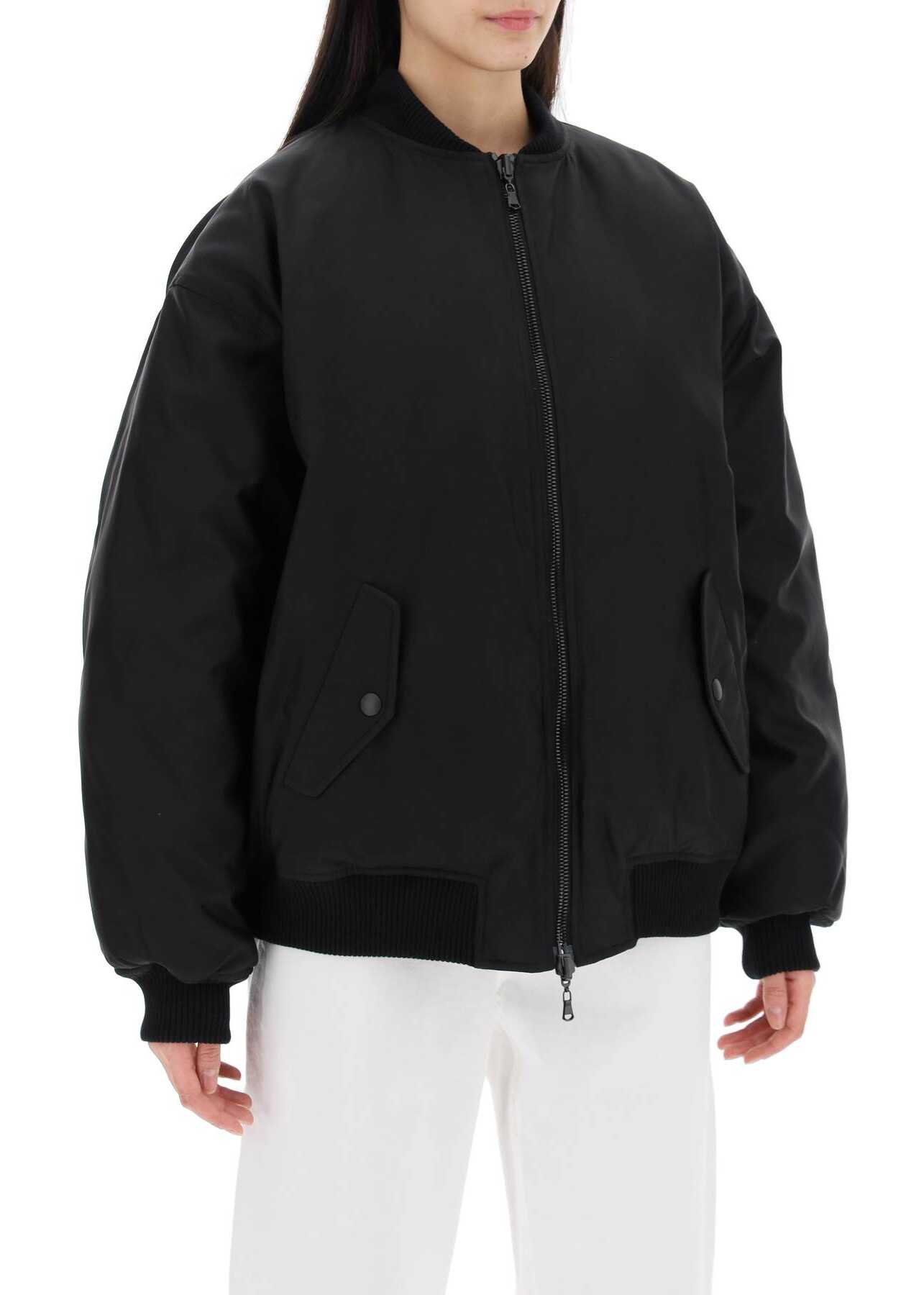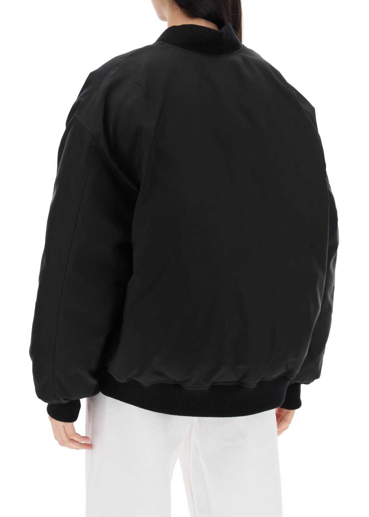 The Wardrobe.NYC Bomber is made of padded nylon filled with 90/10 duck down and feathers. It features a crew neck, ribbed knit cuffs and hem, double-slider front zipper closure, and flap pockets on the sides. The reversible design has a shiny quilted nylon interior with two zippered patch pockets. Oversized fit. Model is 177 cm tall and wears size XS.