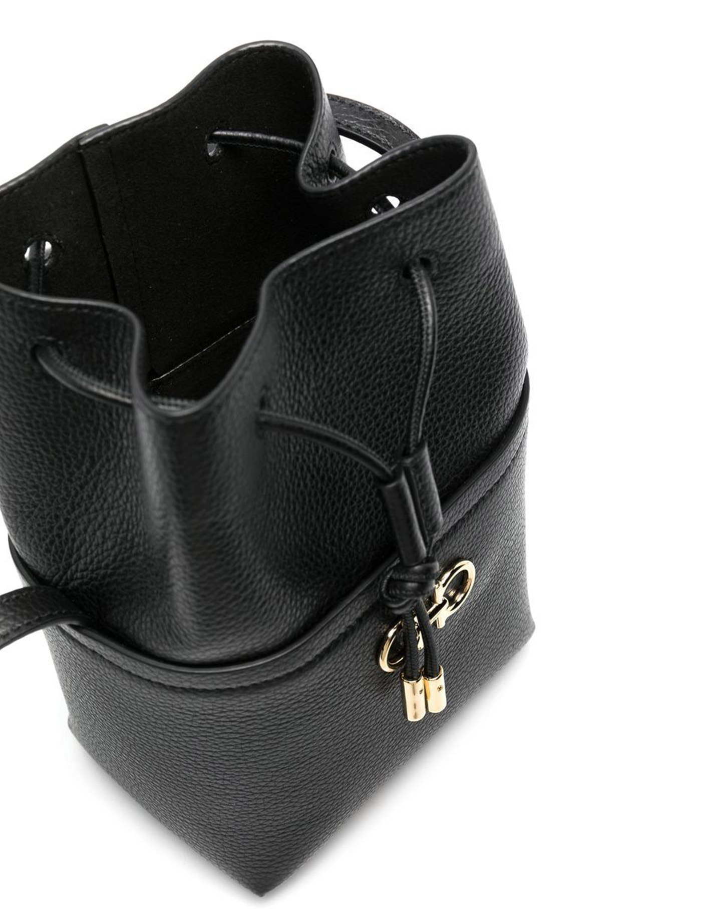 Black leather bucket bag Width: 13 cm Height: 20 cm Depth: 9 cm Min shoulder strap length: 50 cm Max shoulder strap length: 56 cm