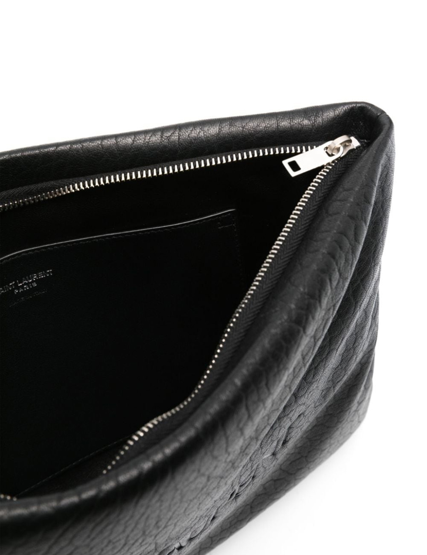 - Material: 95% lambskin, 5% brass - Color: black - Interior leather lining - Other details: Saint Laurent lettering on front - Zip closure - Made in Italy - Dust bag - Item number: 779512AADBZ1000 - Size: 30 x 21 x 4 cm