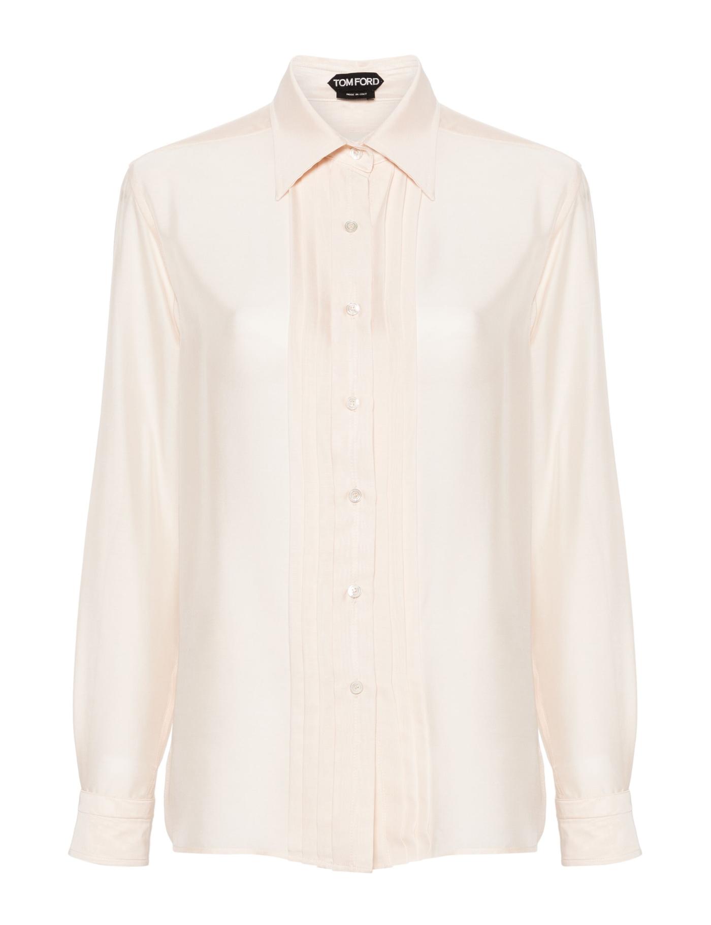 TOM FORD adds a textured feel to the classic long-sleeve shirt. Spun from soft silk, this garment is accented by plissé detailing on the front placket.