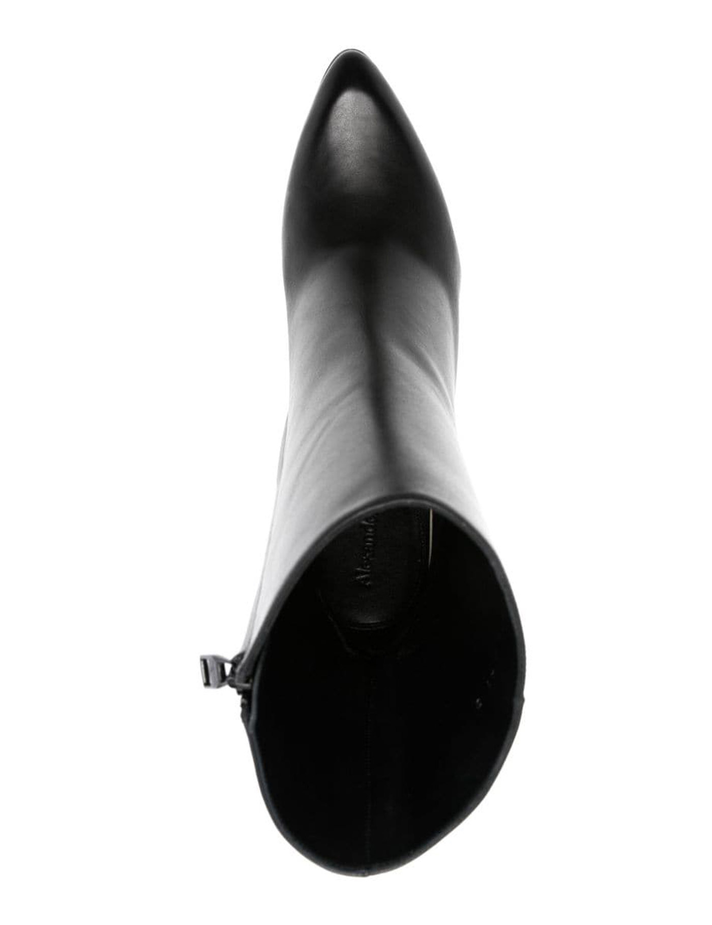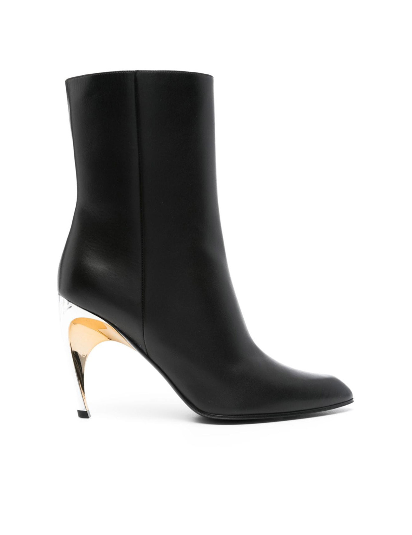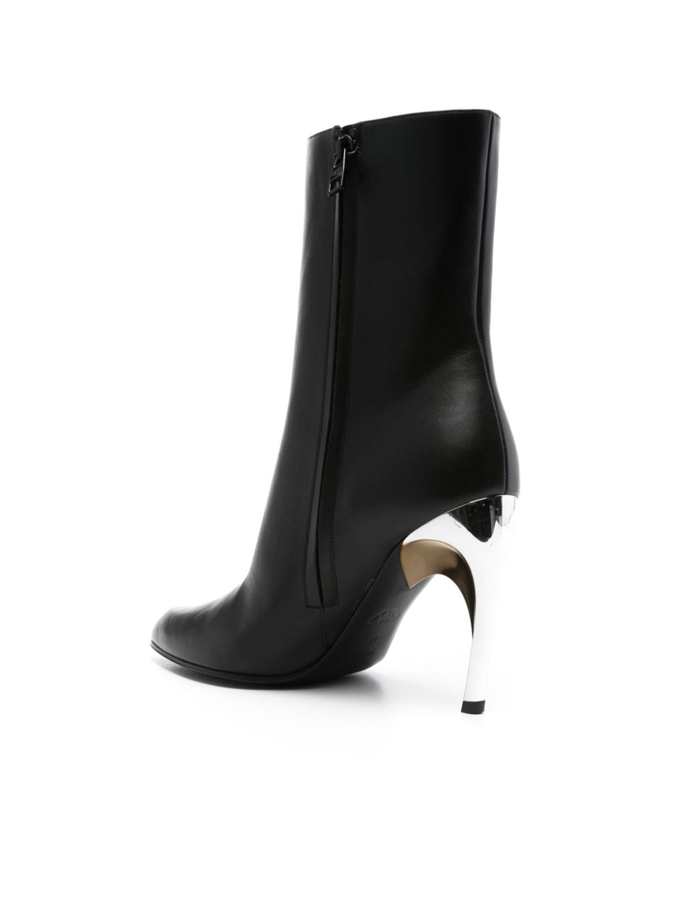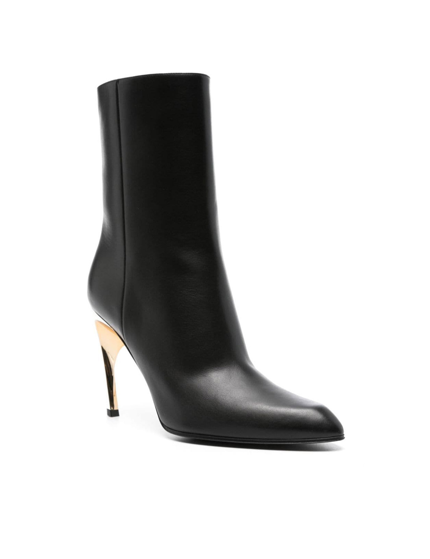 black calf leather smooth grain almond toe side zip fastening branded leather insole 95mm lacquered high heel leather and rubber outsole ankle-length