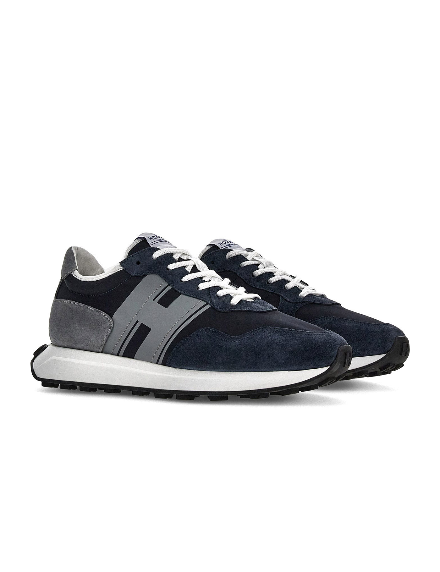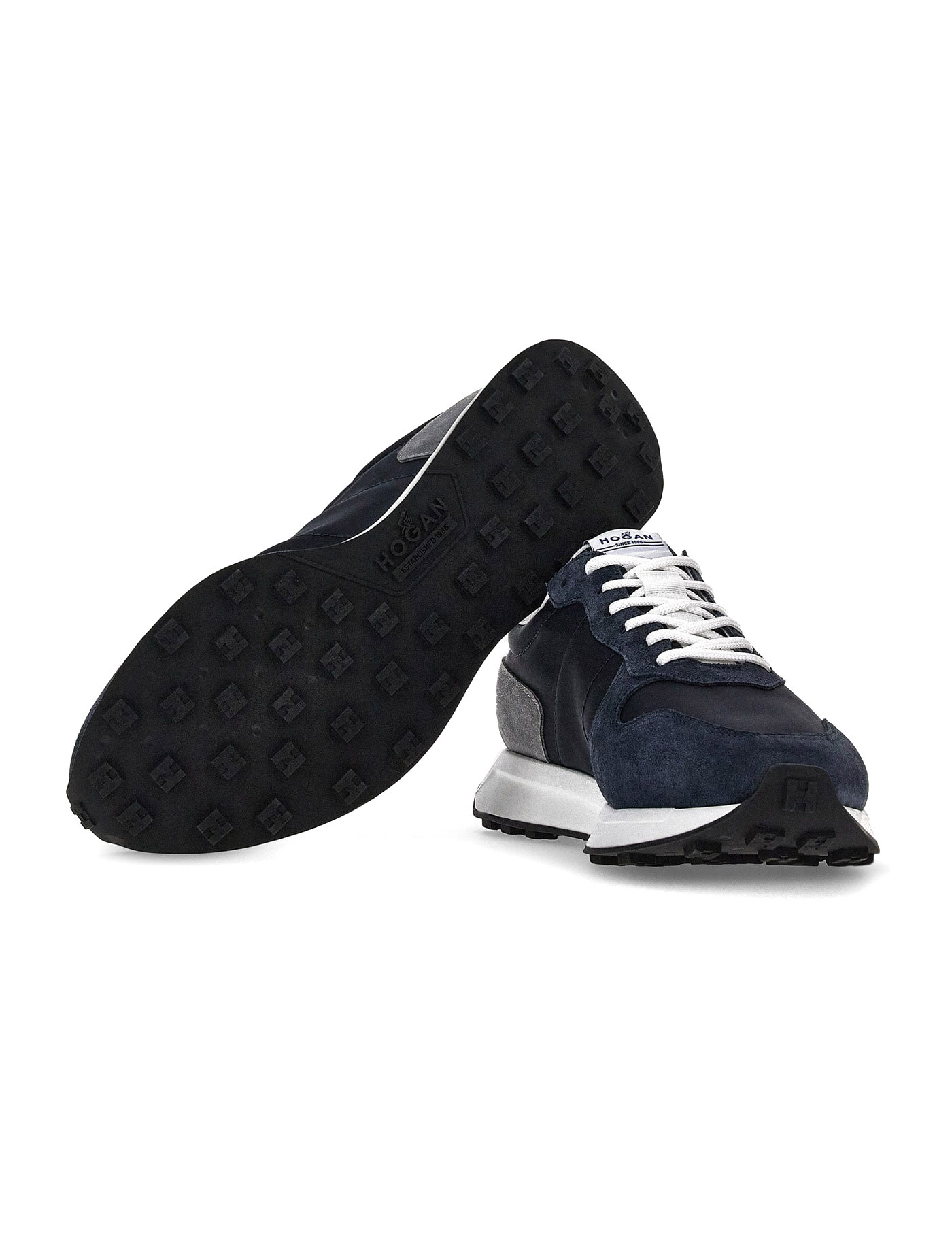 side logo-patch detail low-top sneakers from HOGAN featuring logo patch at the tongue, round toe, front lace-up fastening, branded insole, flat rubber sole, dark blue, calf leather and logo patch to the side. HEEL: 4.5 Centimetres Sole height: 2.0 Centimetres