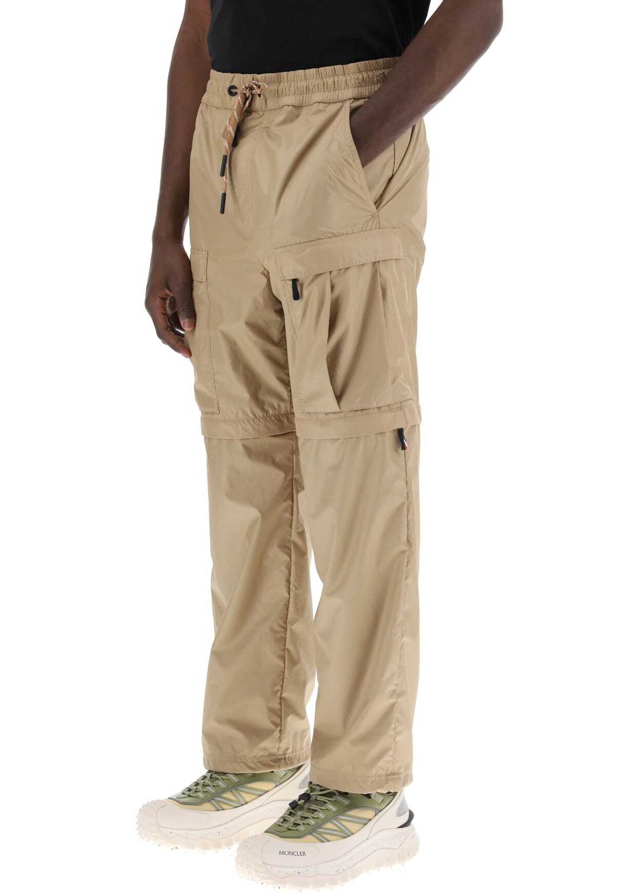 Cargo pants from the Day-Namic collection by Moncler Grenoble, made of technical ripstop fabric and featuring a convertible design with zip-off legs to transform into shorts. They have an adjustable elastic waistband with drawstring, hidden front zip closure with flap, side French pockets, and expandable pockets on the legs. Lined with mesh. Straight and relaxed fit with adjustable bottom hem through inner drawstring. The model is 187 cm tall and wears a size M.