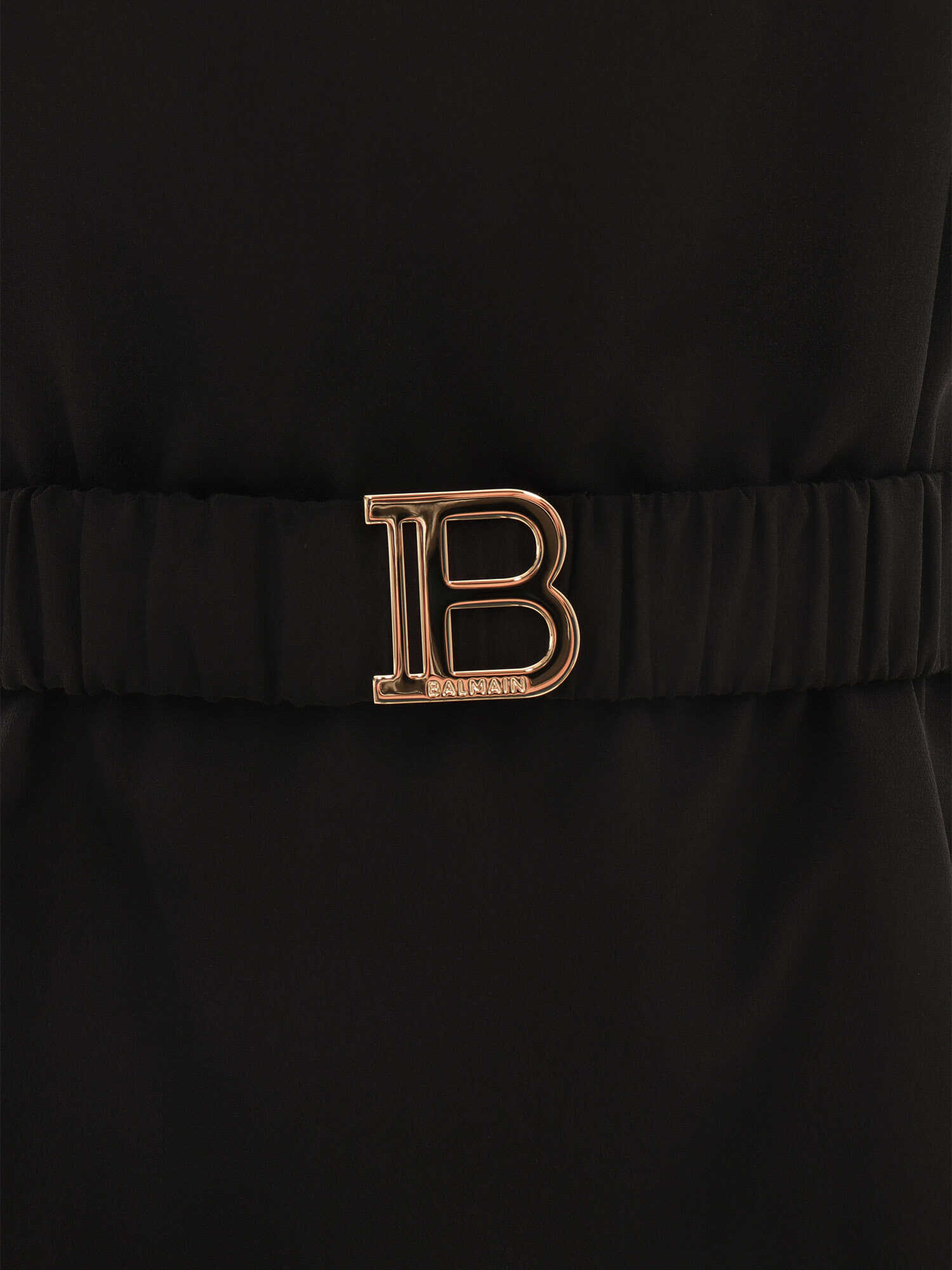 Black sleeveless dress for girls with flared skirt, in viscose and silk blend, belt at the waist with gold logo plaque, rear zip closure
