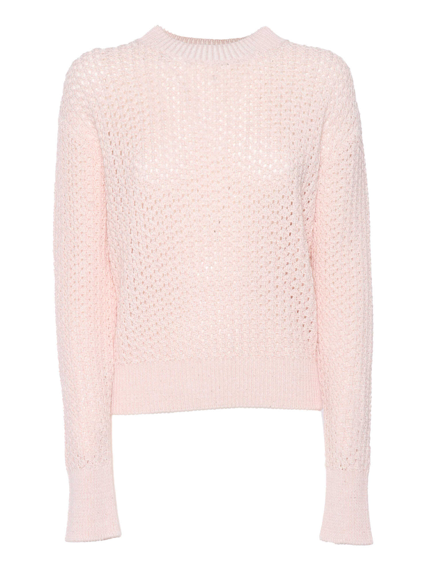 Pink crew-neck long-sleeved shirt in mesh stitch cotton.