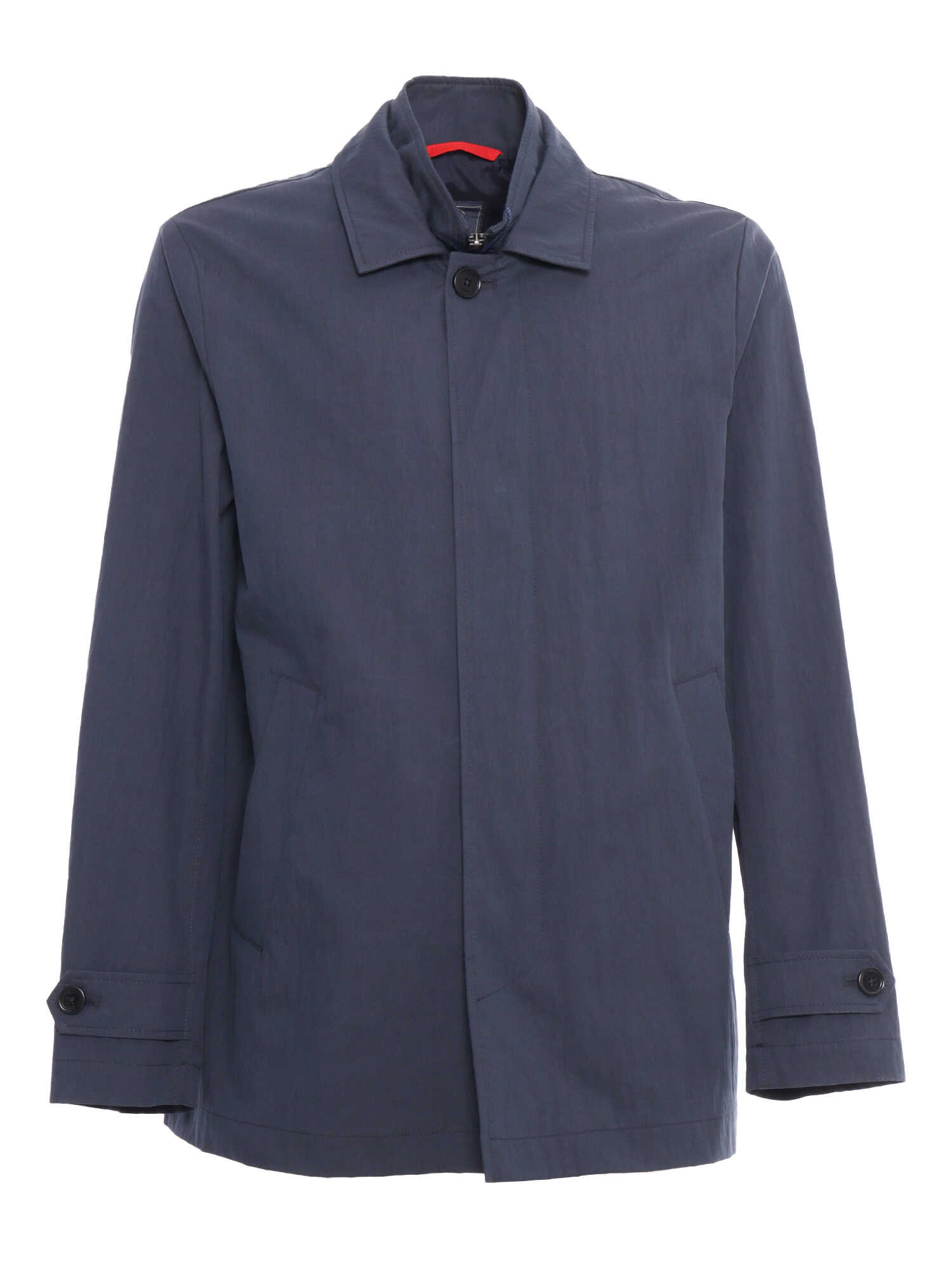 Fay Morning short blue men's jacket with classic collar, zip, button, strap on cuffs.